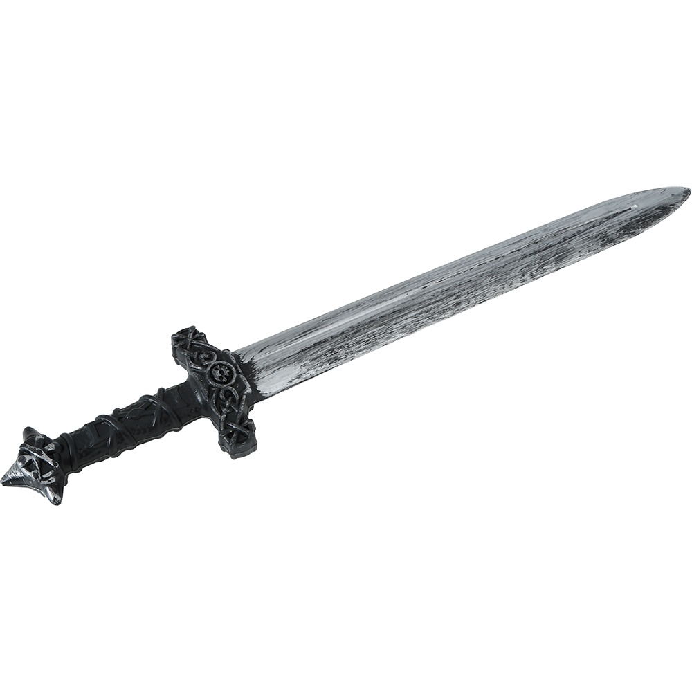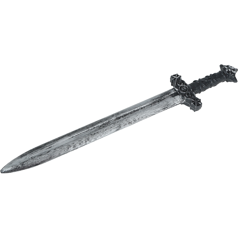 Espada medieval de 58 cm en PVC, diseñada para completar disfraces de guerrero y caballero. Presenta un acabado envejecido que imita el metal real para un aspecto muy auténtico.