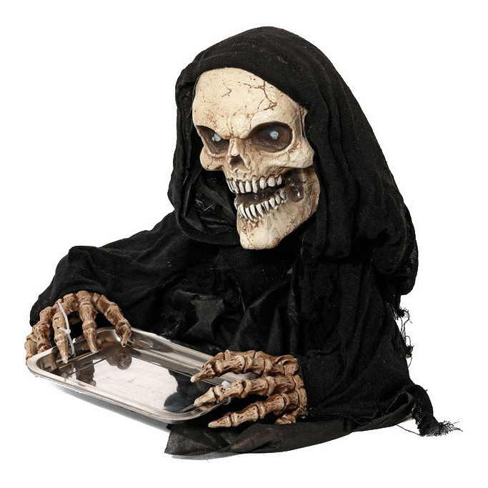 - Sostiene una bandeja para dulces o bebidas y cuenta con efectos de luz y sonido que sorprenderán a tus invitados.