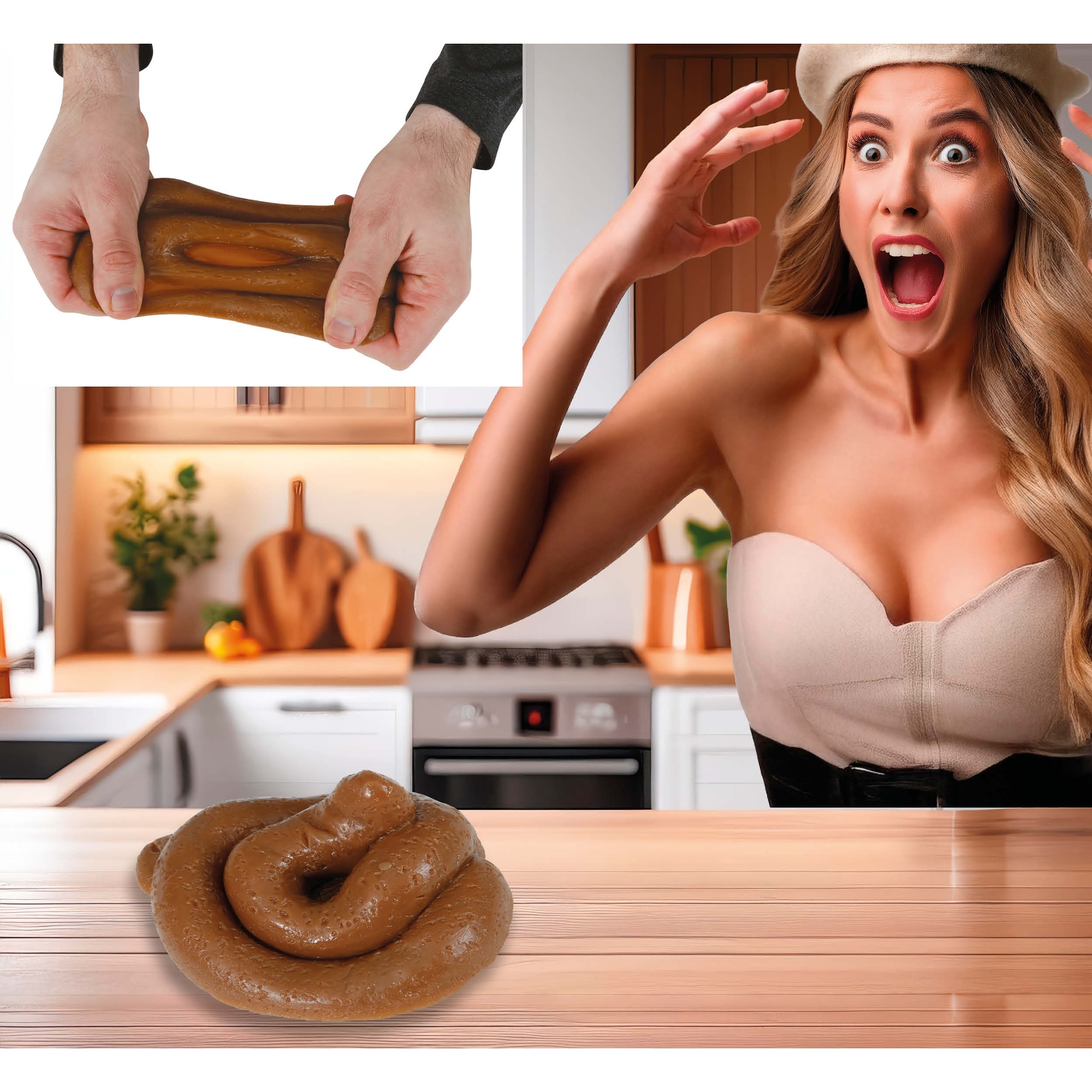 Excremento viscoso realista hecho en látex con una textura y brillo que imitan sorprendentemente la apariencia auténtica. Mide aproximadamente 11 cm y es flexible para moldearlo según la broma o la decoración. Perfecto para sorprender en reuniones, fiestas y sesiones fotográficas cómicas.