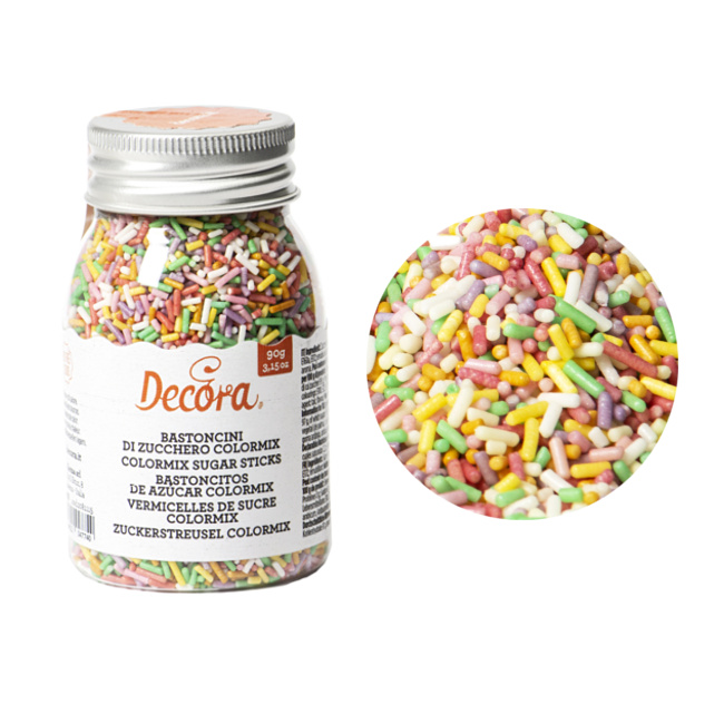Ingredientes Blanco: Azúcar, jarabe de glucosa, aceite vegetal (coco, colza), almidón de maíz, emulsionante (lecitinas), antiaglomerante (talco).