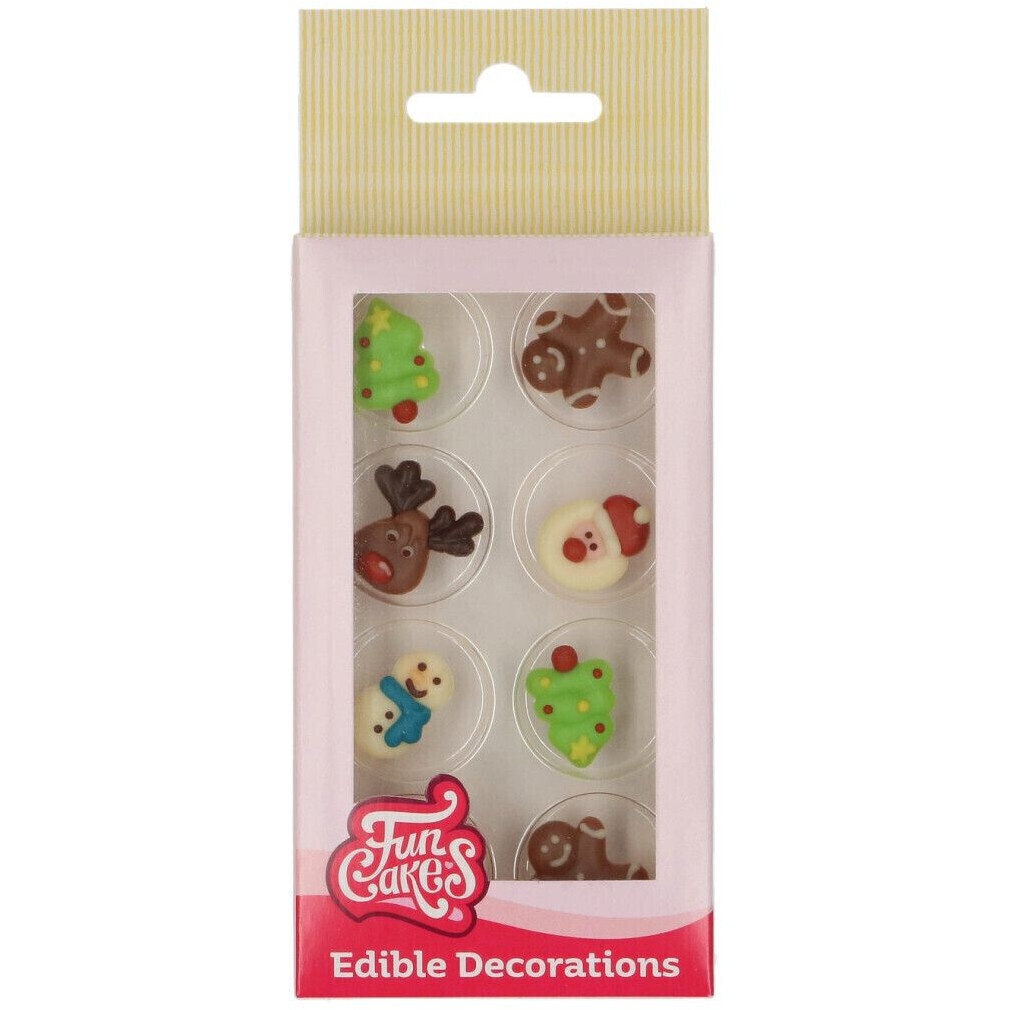 - 8 decoraciones de chocolate de Funcakes con temática navideña.