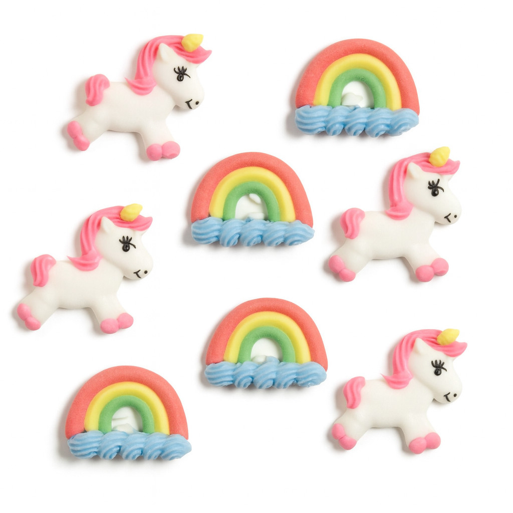 Figuras de azúcar de Unicornios felices - 8 unidades