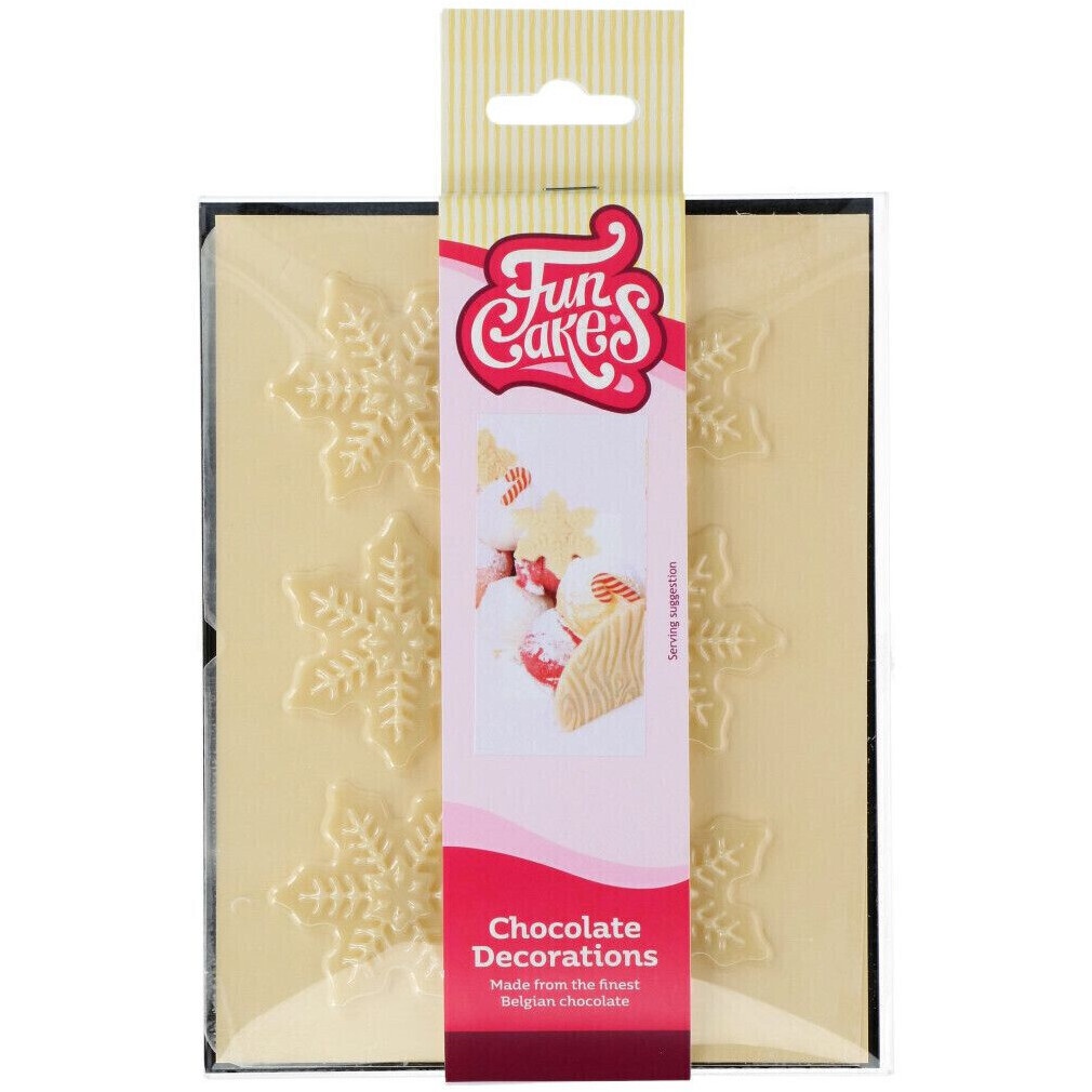 - 6 decoraciones de chocolate blanco belga de Funcakes con diseño perfecto para Navidad.