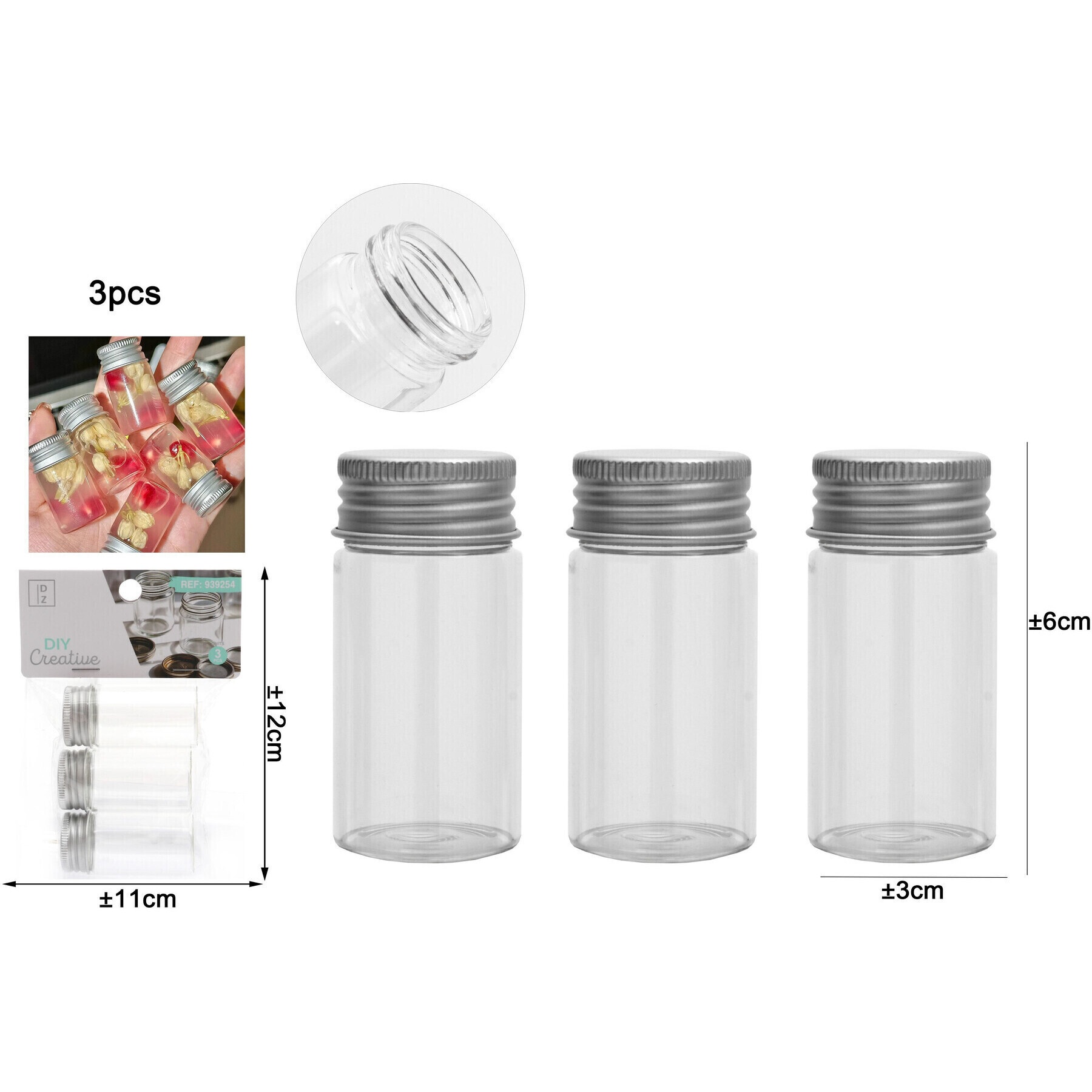 Frasco de 6 x 3 cm de vidrio con tapón de metal - 3 unidades