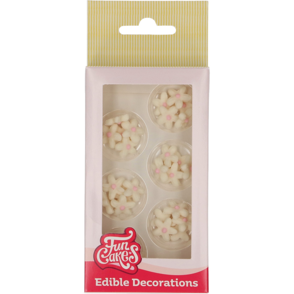 Decora tartas, cupcakes y galletas al instante con las delicadas flores de pasta de azúcar FunCakes. Su diseño en blanco con centro rosa aporta un toque primaveral y alegre, ideal para celebraciones de Pascua. Están listas para usar y ofrecen una presentación cuidada sin necesidad de trabajo adicional. Producto certificado sin gluten para mayor tranquilidad.