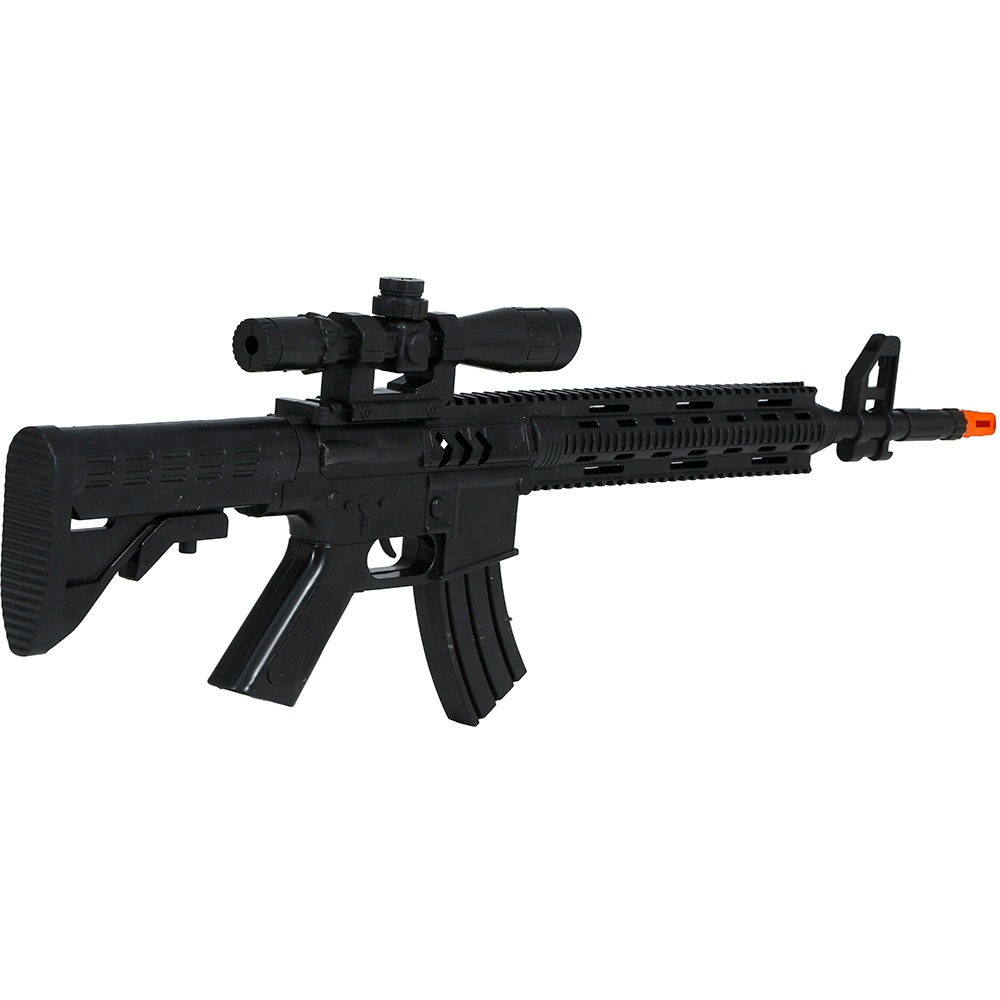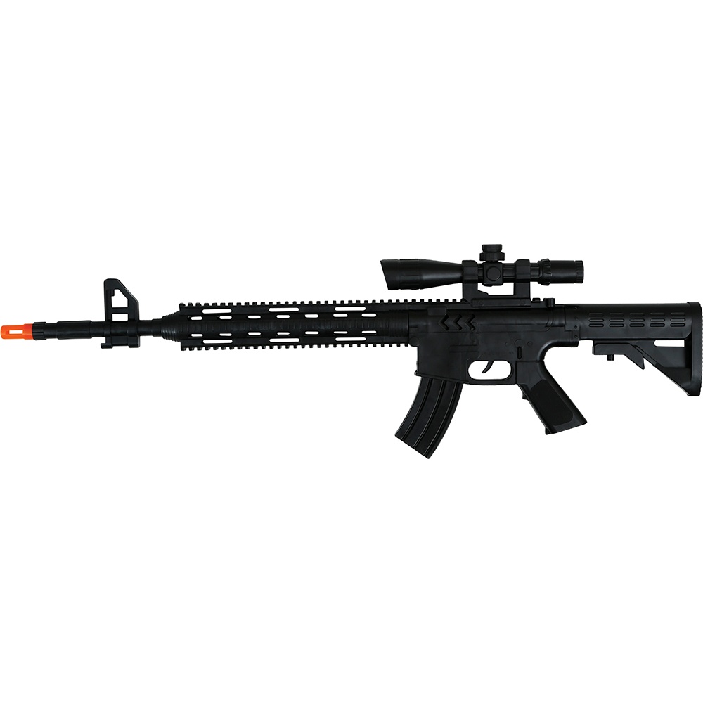 Fusil de asalto realista pensado como complemento para disfraces de policía, militar o fuerzas especiales. Su diseño detallado ofrece un aspecto auténtico en carnavales, eventos de cosplay y sesiones fotográficas temáticas. Fabricado en PVC ligero con punta naranja de seguridad para un uso visualmente realista y responsable. Accesorio ideal para completar tu caracterización sin añadir peso excesivo.