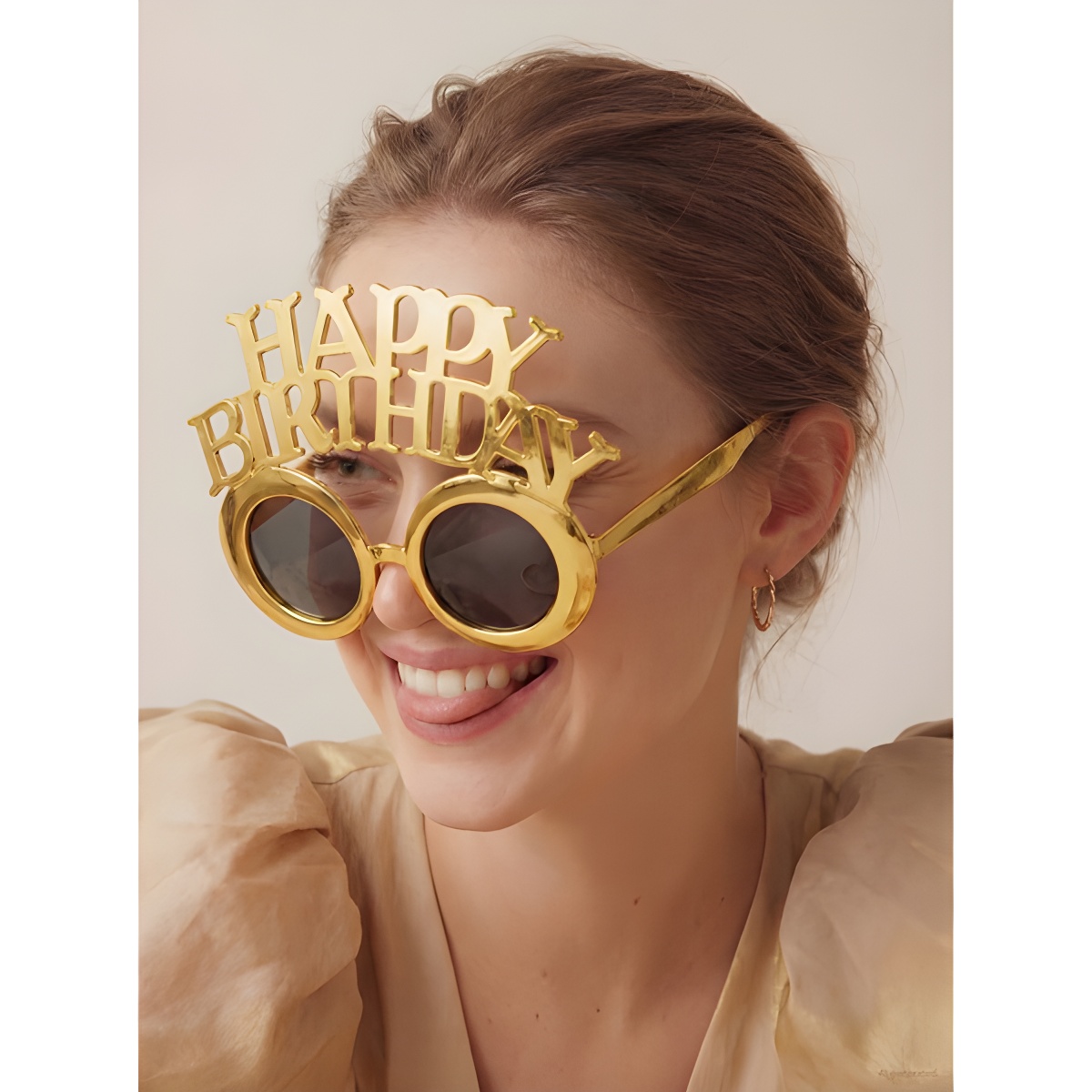 Gafas divertidas con la inscripción "Happy Birthday" en acabado dorado frío, pensadas para aportar un toque festivo y llamativo a cualquier cumpleaños.