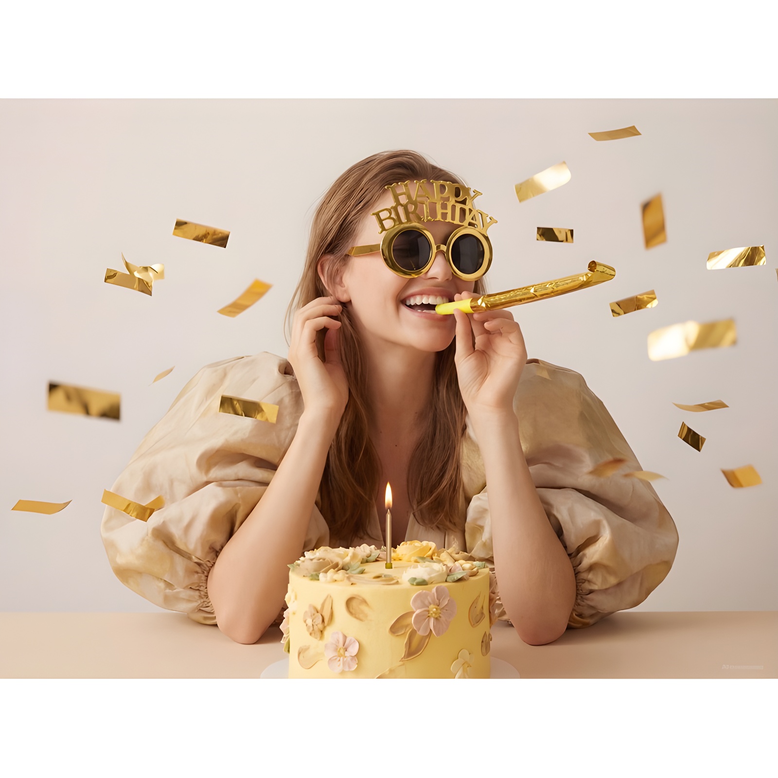 - Frase 'Happy Birthday' en dorado frío para un impacto visual inmediato.