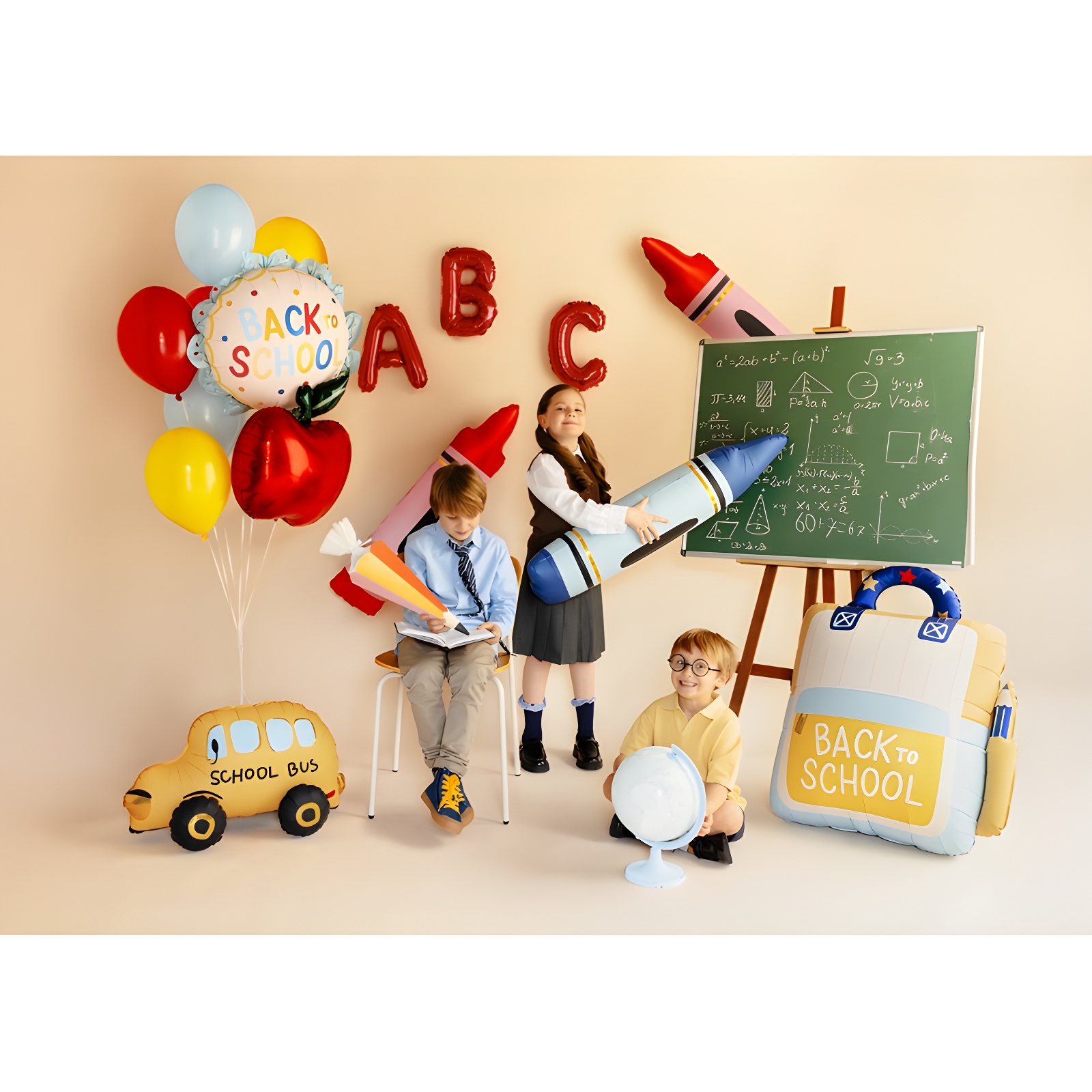 Ideal para decorar fiestas de vuelta al cole, recepciones escolares y sesiones de fotos del primer día de clase.