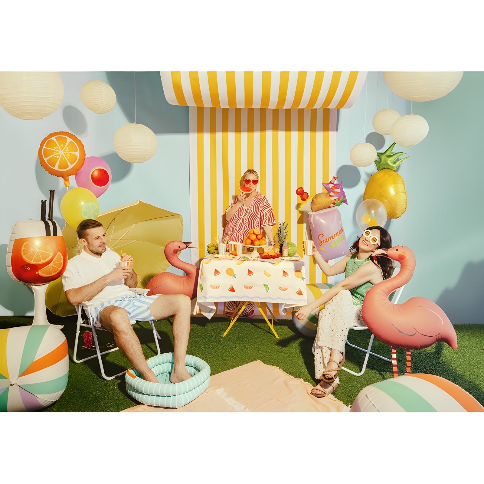 Globo en forma de flamenco en color coral con patas acoplables, ideal para aportar un toque tropical y divertido a cualquier ambiente.