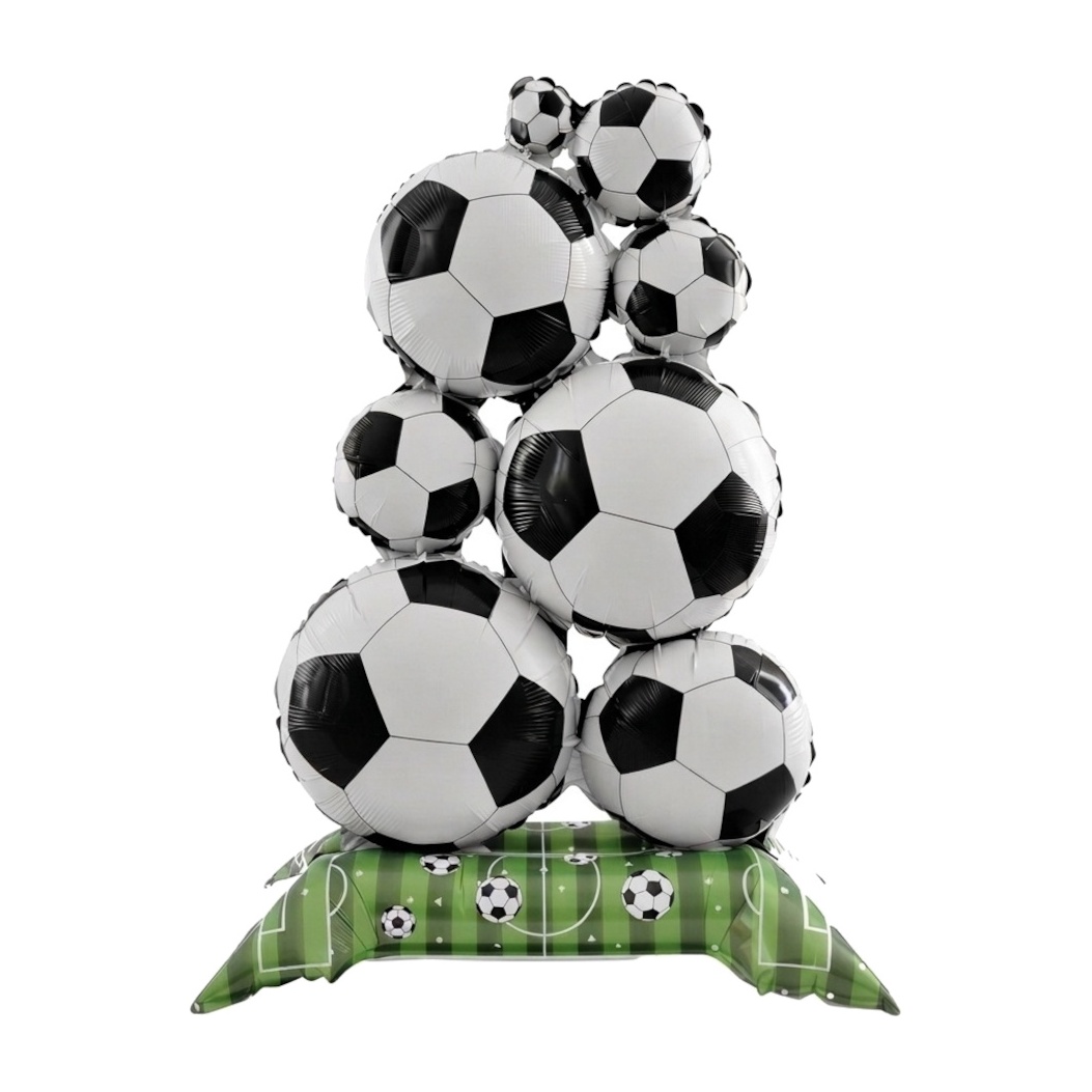 Globo de campo de fútbol y balones con base de 98 x 56 cm