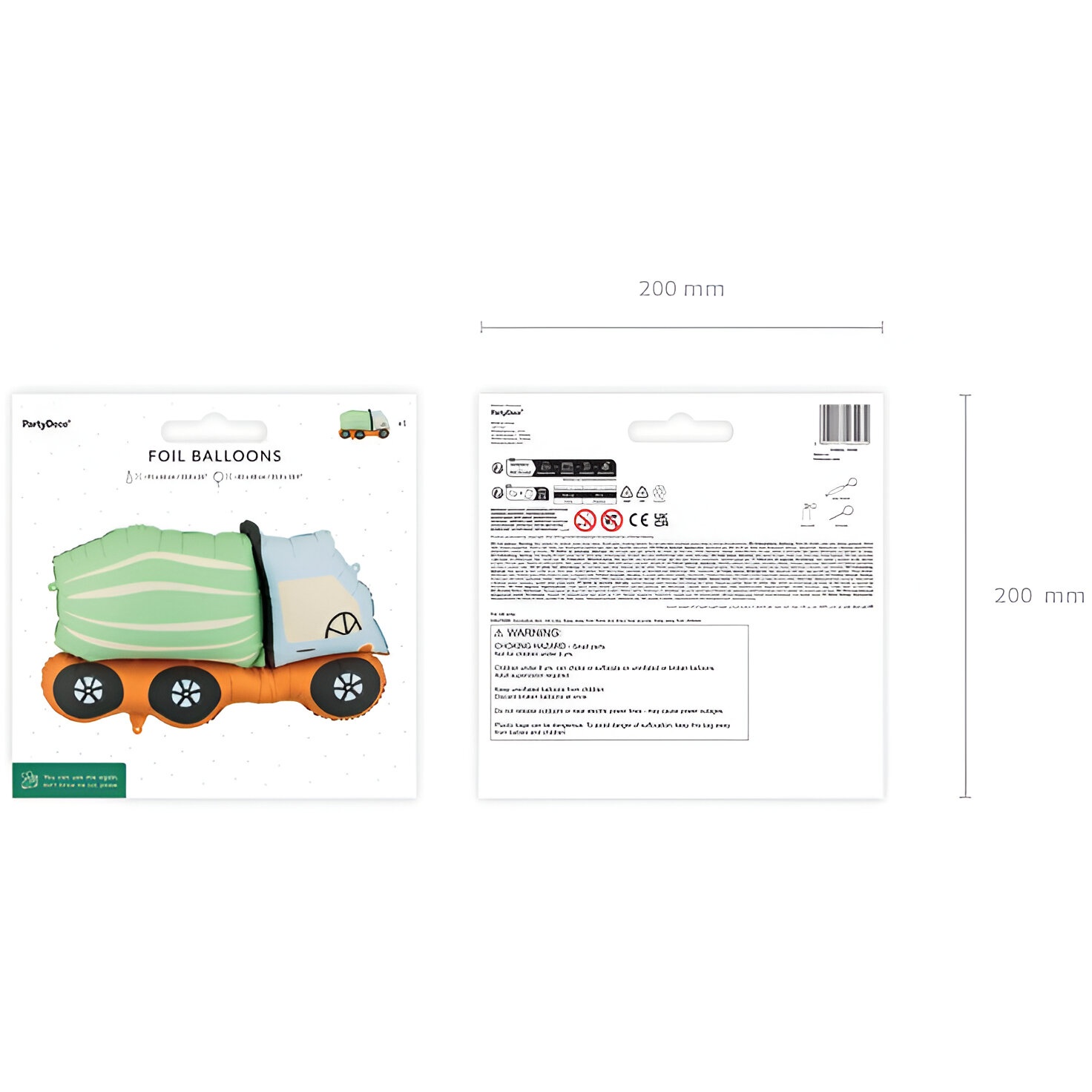 Globo foil con diseño de hormigonera en una mezcla de colores vivos que aporta un toque divertido y temático a celebraciones infantiles. Tamaño aproximado antes de inflar: 91 x 66 cm; tamaño aproximado después de inflar: 81 x 48 cm. Diseñado para inflado con aire, su forma detallada y acabado metalizado realzan cualquier decoración.