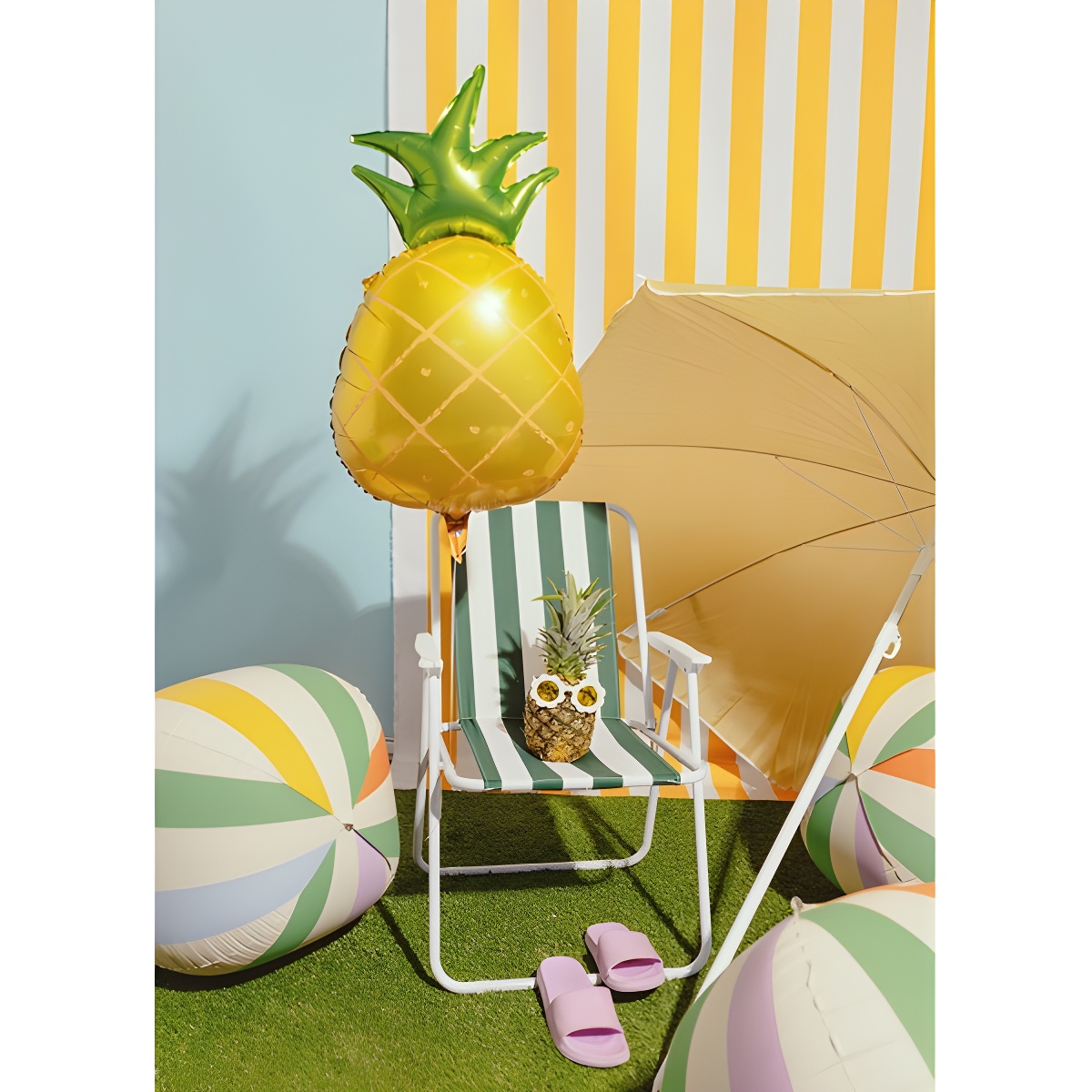 Globo foil con diseño de piña en amarillo y verde, ideal para aportar un toque tropical y llamativo a cualquier fiesta. Se infla con helio o aire y cuenta con cierre autoseillante para una colocación rápida y segura. Incluye anillas para colgar y un acabado brillante que lo convierte en un centro de atención en mesas, photocalls y decoraciones temáticas.