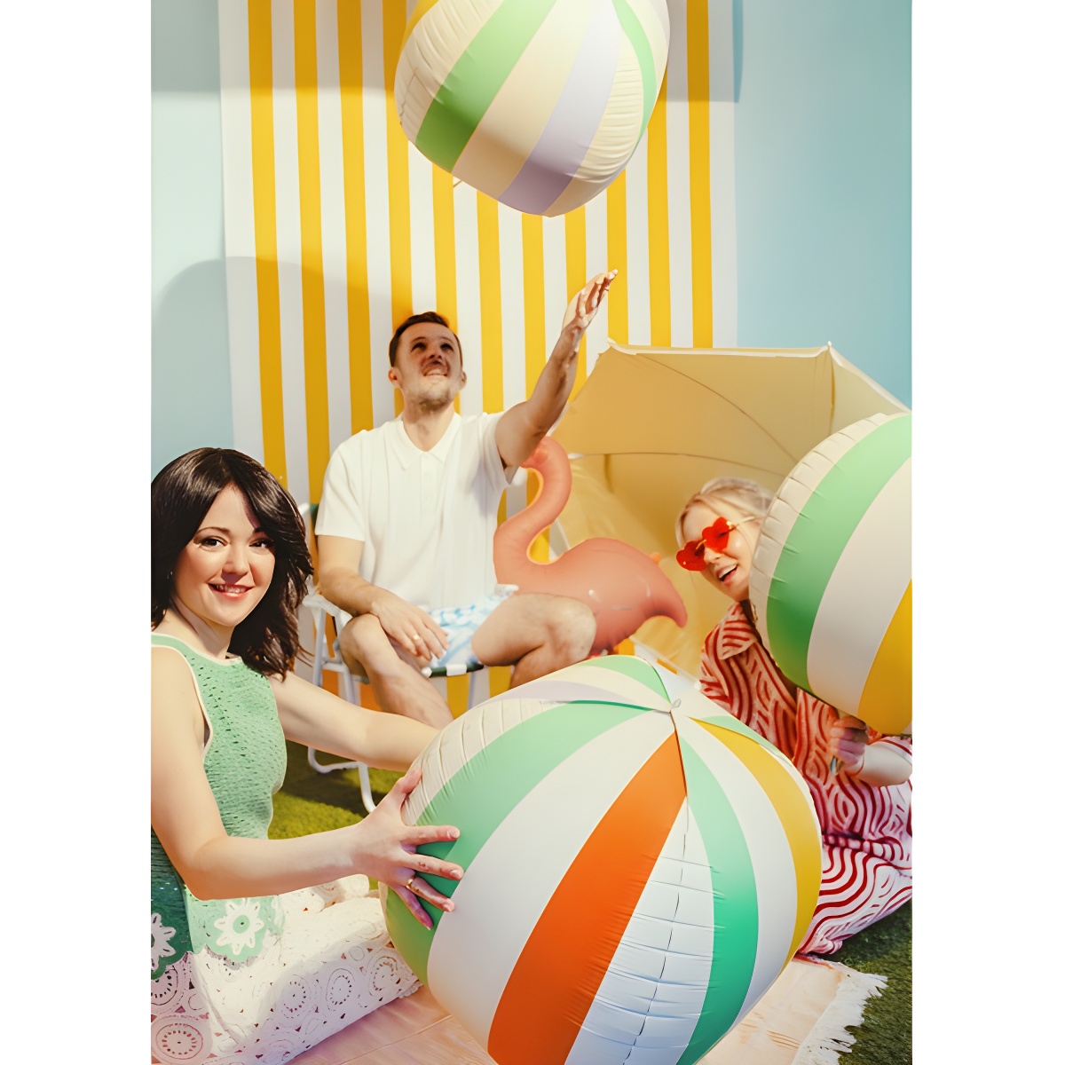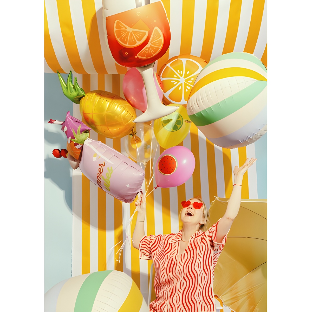 Globo foil con un alegre patrón de rayas multicolor que aporta un toque festivo y moderno a cualquier celebración. Su silueta redonda y colores vivos lo convierten en un punto focal ideal para cumpleaños y eventos.