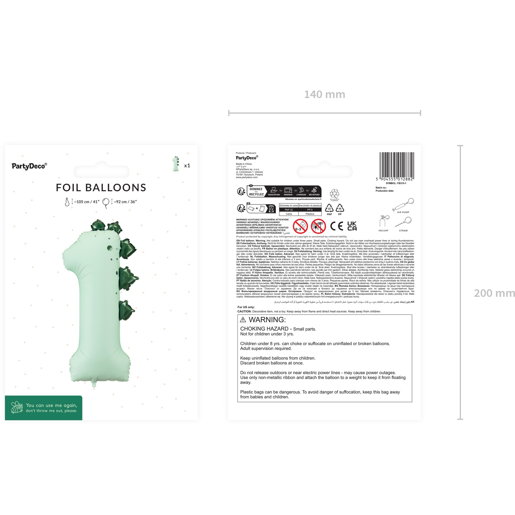 Globo de número de Dinosaurio de 92 cm - PartyDeco - 1 unidad