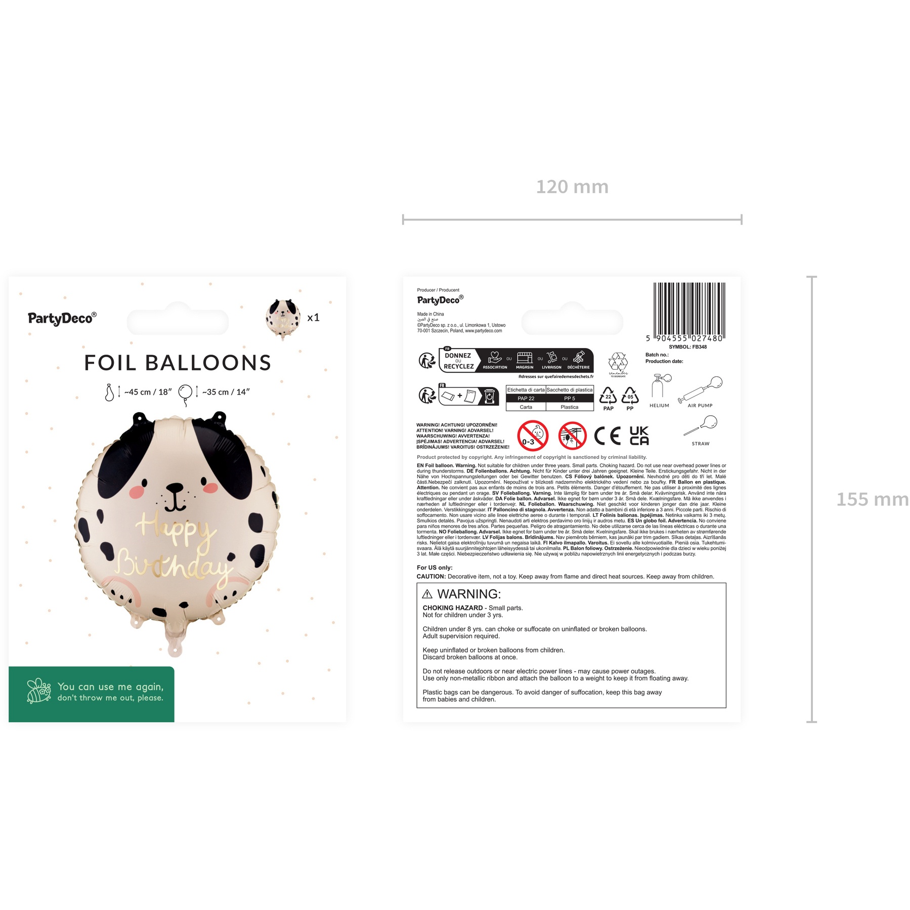 No es un juguete. Mantener fuera del alcance de niños menores de 3 años: los globos desinflados o rotos pueden causar asfixia o atragantamiento.