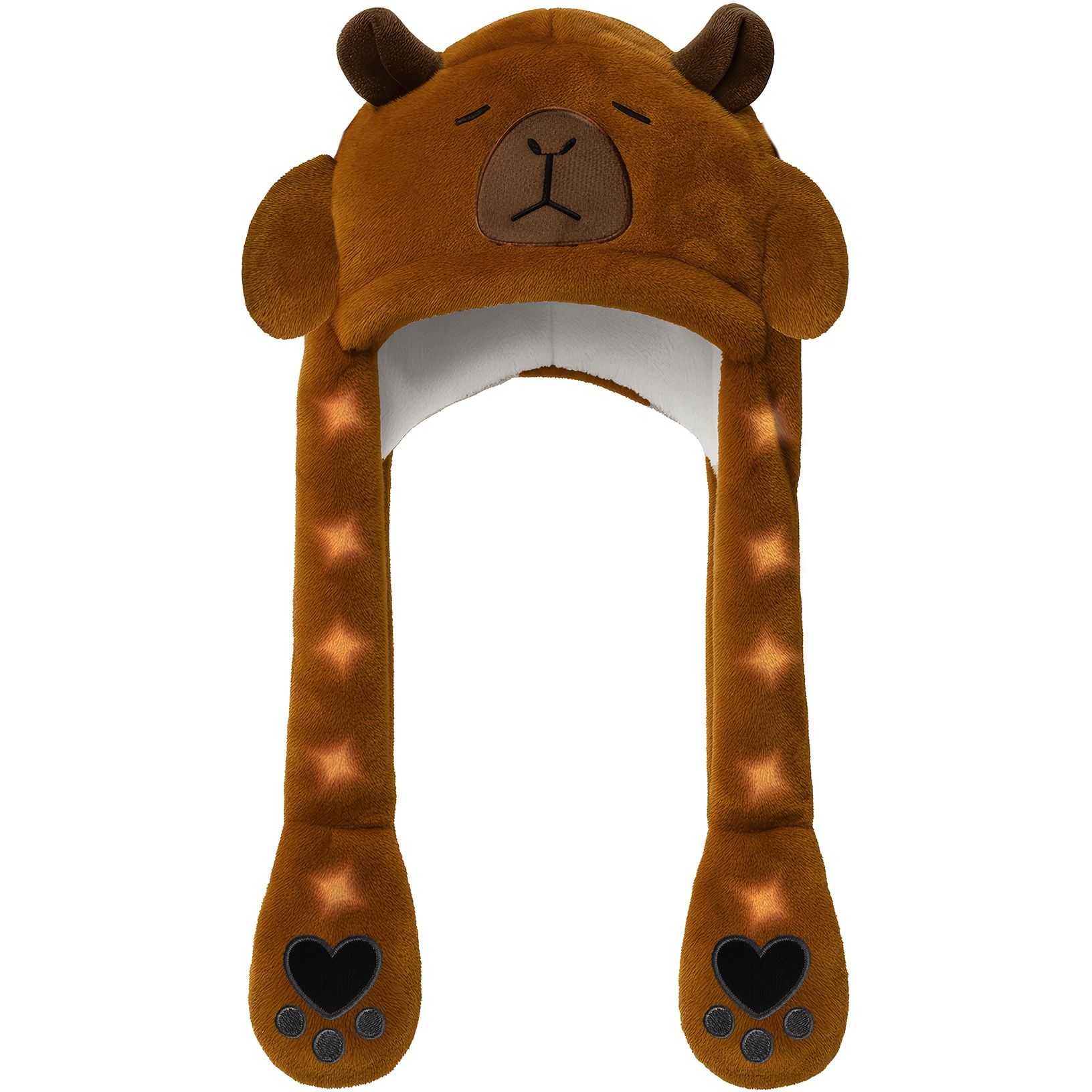 - Diseño adorable inspirado en capibara con orejas y patas acolchadas.