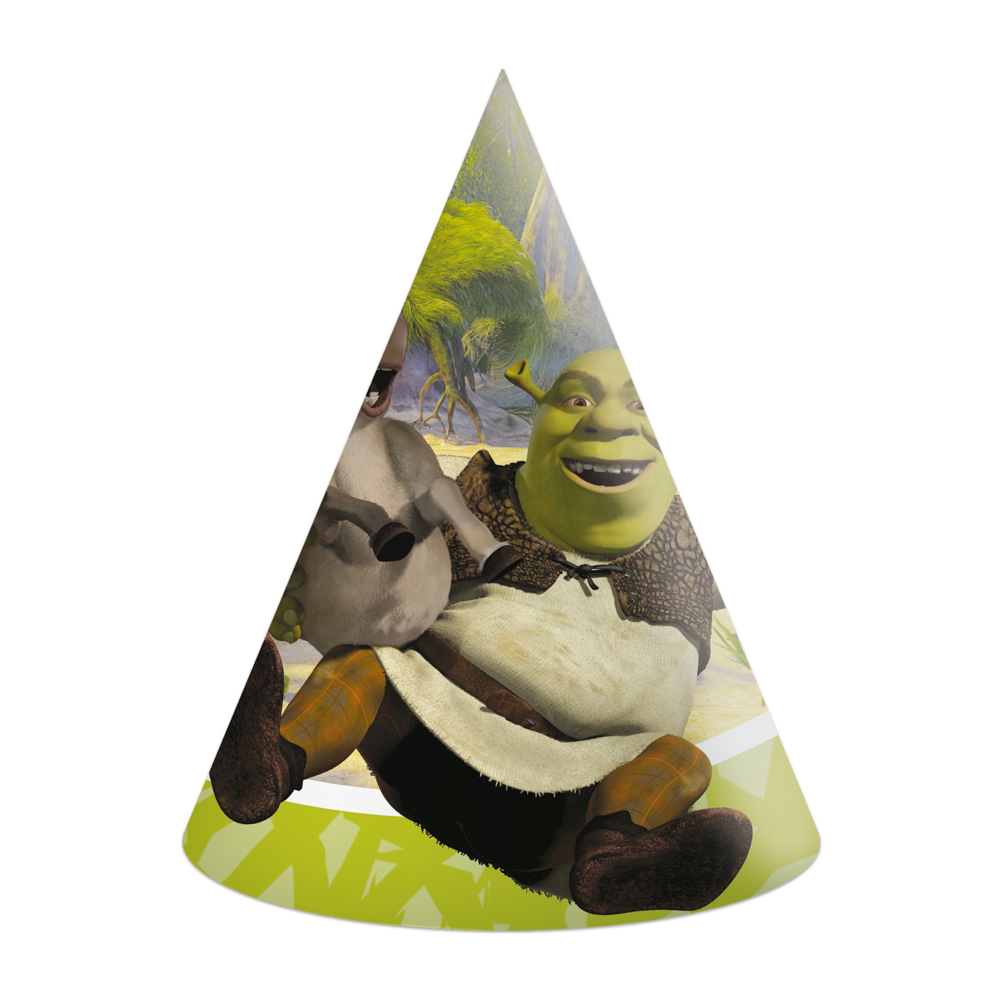 Gorros de fiesta con el divertido diseño de Shrek pensados para alegrar cualquier celebración infantil.