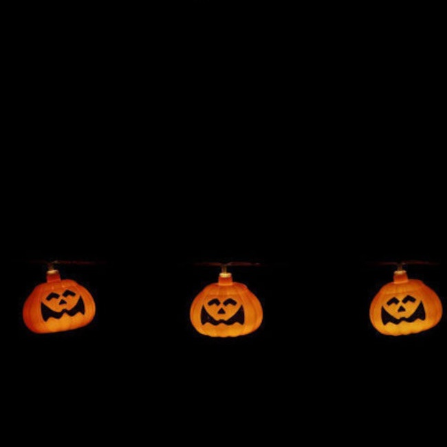 • Añade un toque de horror a tu decoración con esta guirnalda de calabazas con luz.