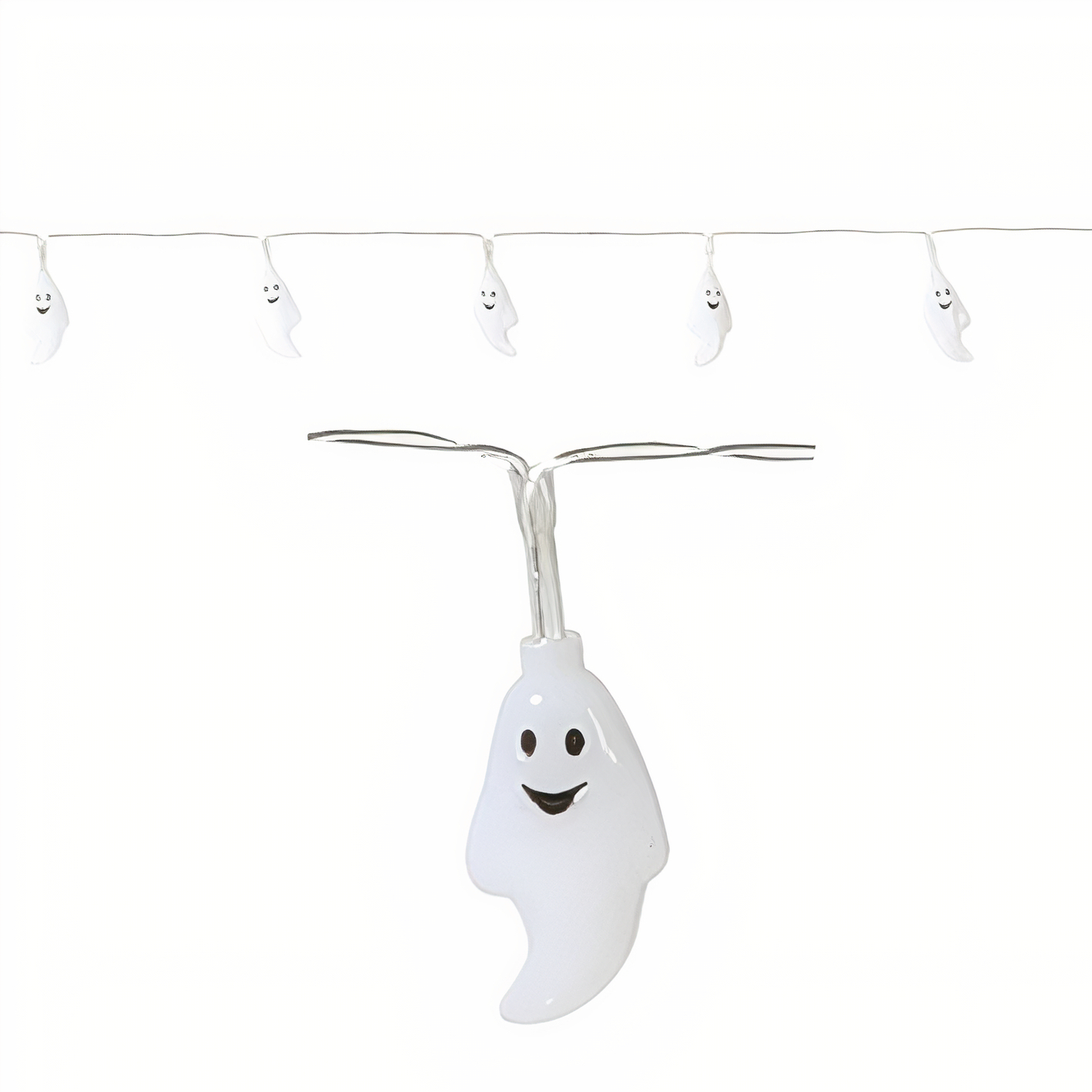• Añade un toque de horror a tu decoración con esta guirnalda de fantasmas con luz.
