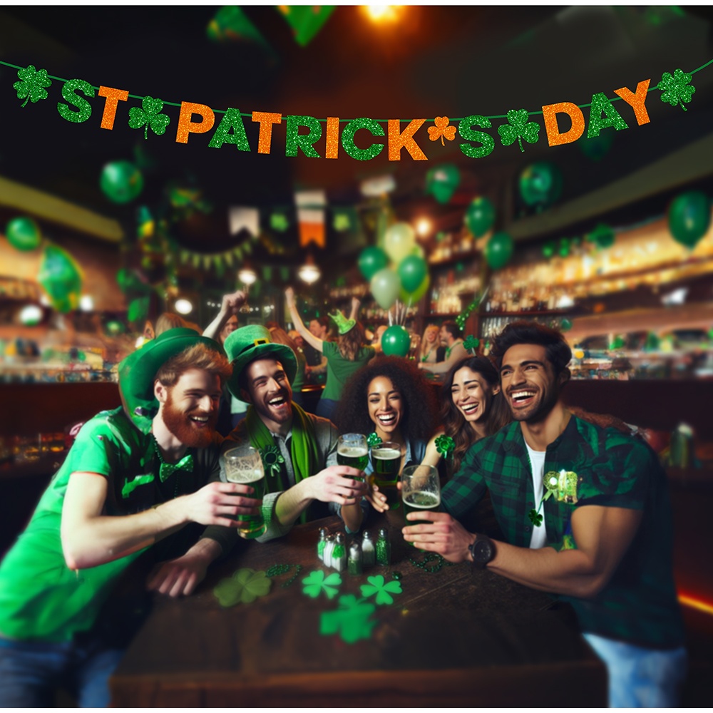 - Motivo visible: letras grandes y tréboles decorativos para un aspecto auténtico de San Patrick.