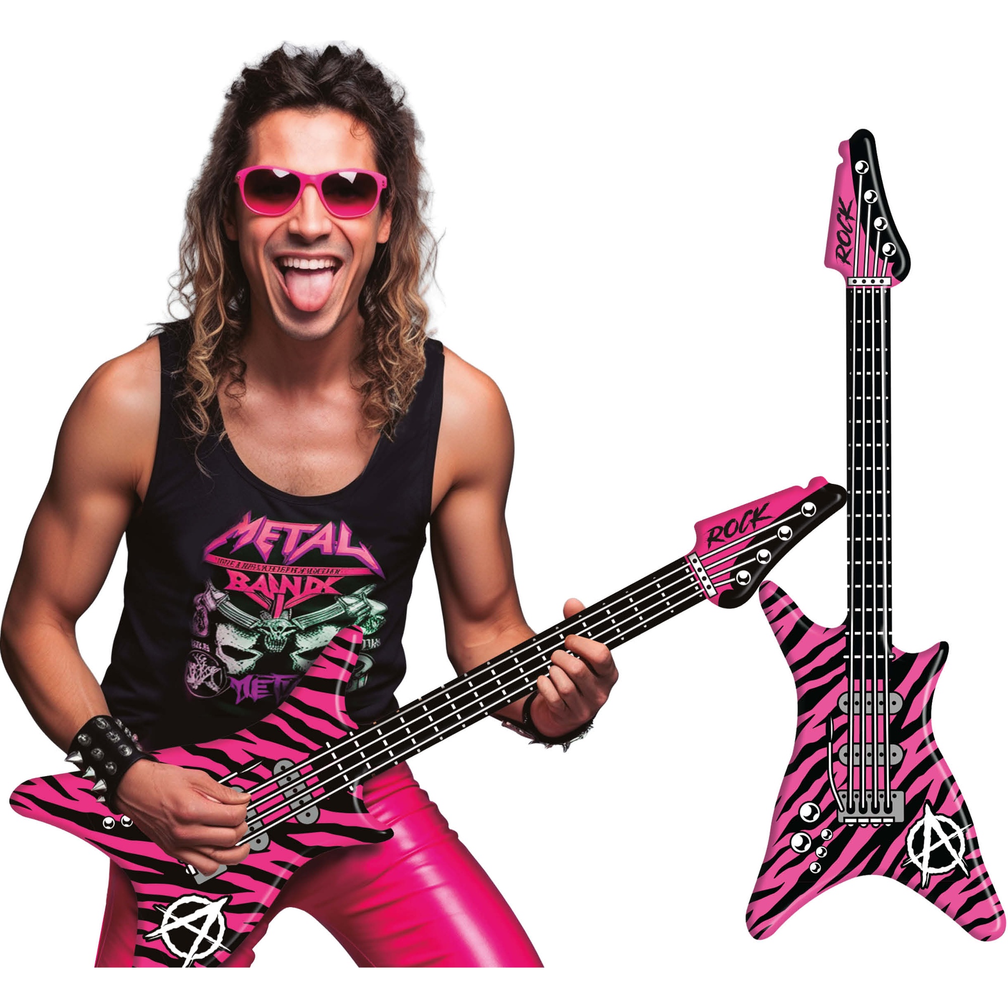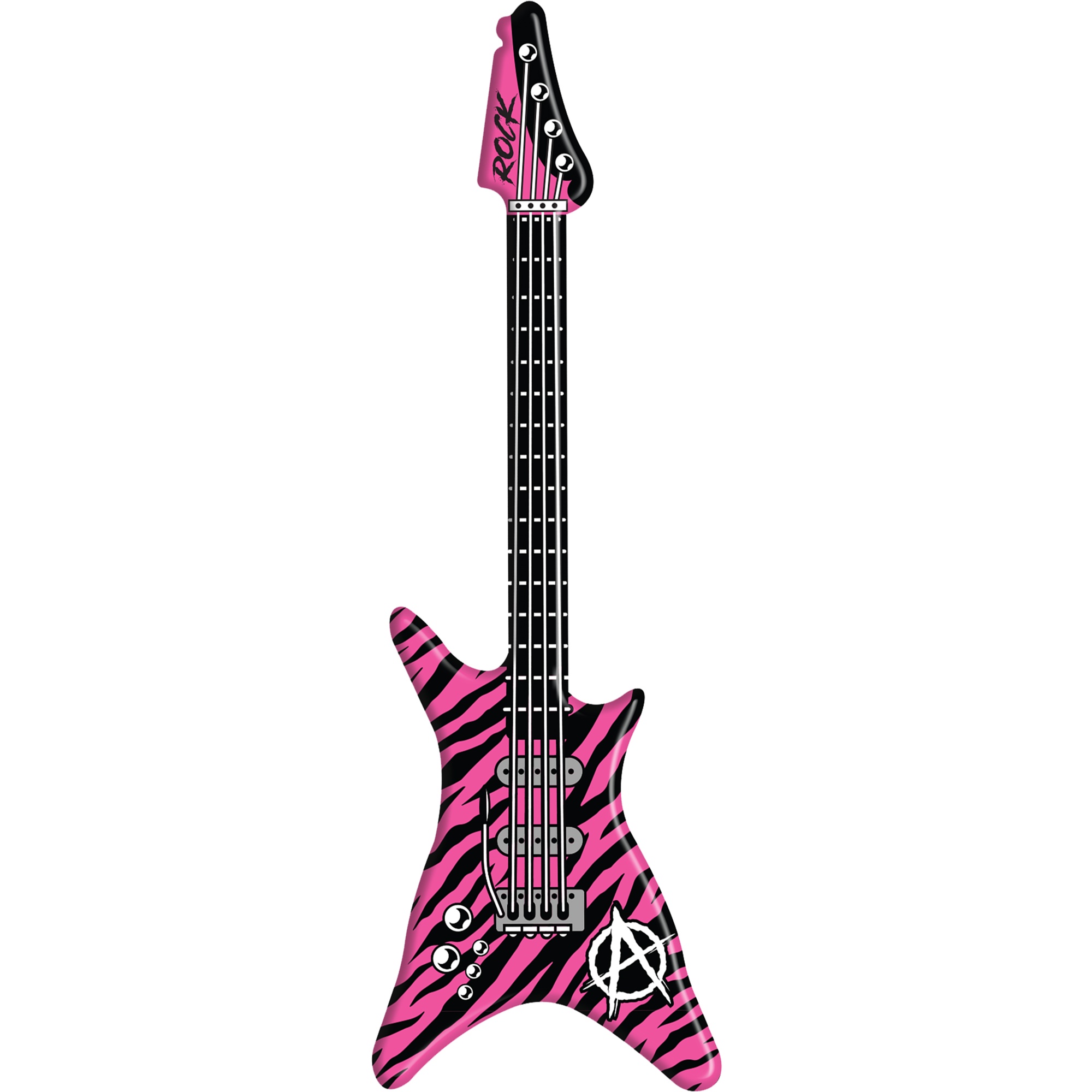Guitarra hinchable con estética rockera pensada para dar vida a tus fiestas y photocalls. Su diseño llamativo en rosa con estampado a rayas añade un toque divertido y fotogénico a cualquier evento. De gran impacto visual, es perfecta para despedidas, conciertos temáticos, cumpleaños y celebraciones.