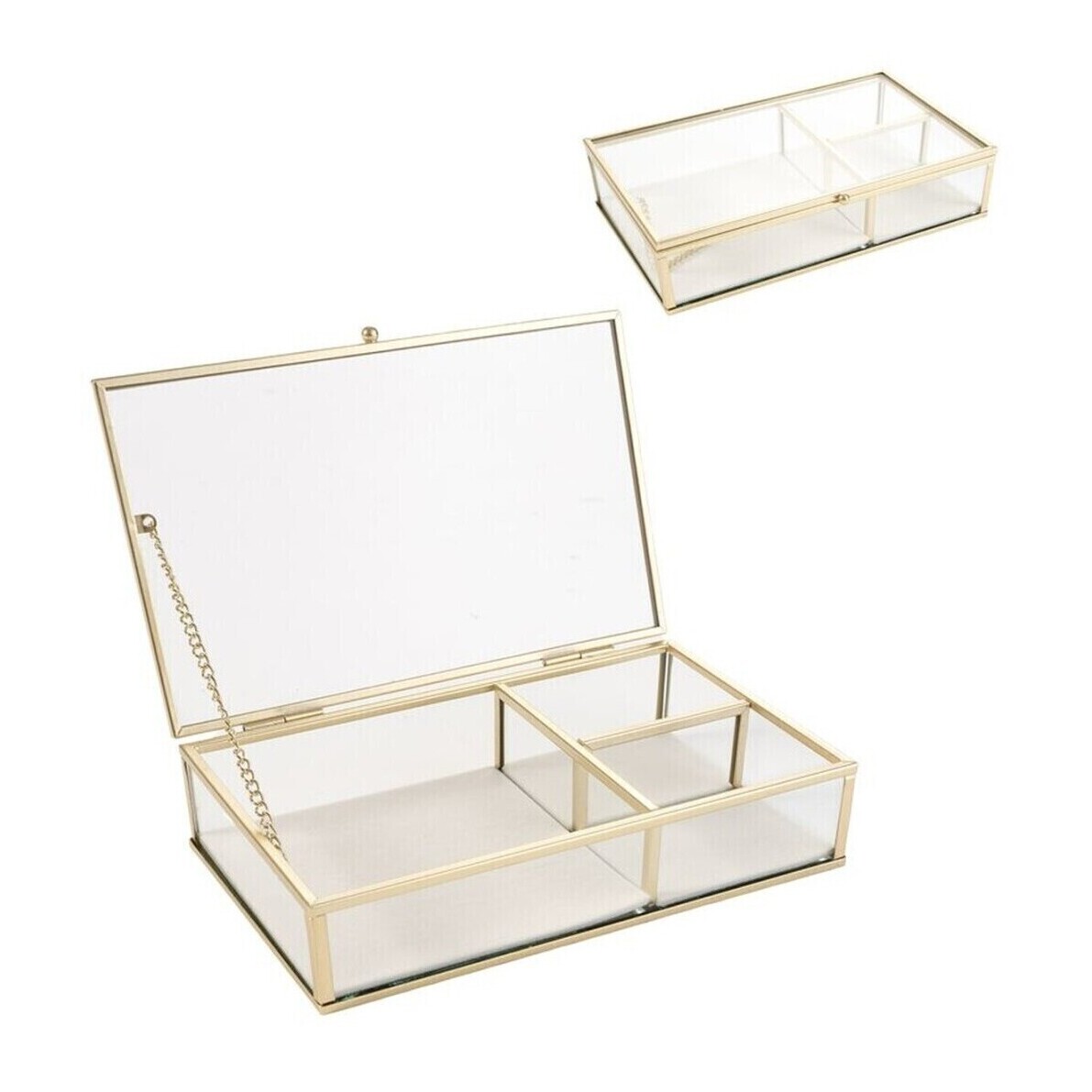 Joyero de cristal con filo dorado de 20 x 13 x 4,5 cm