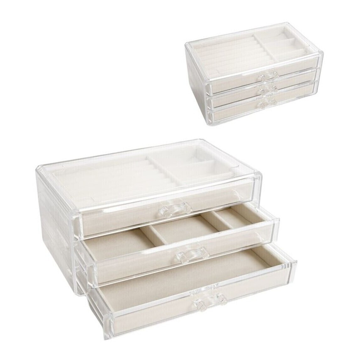 Joyero transparente en cajón con 3 niveles de 23,5 x 14 x 11 cm