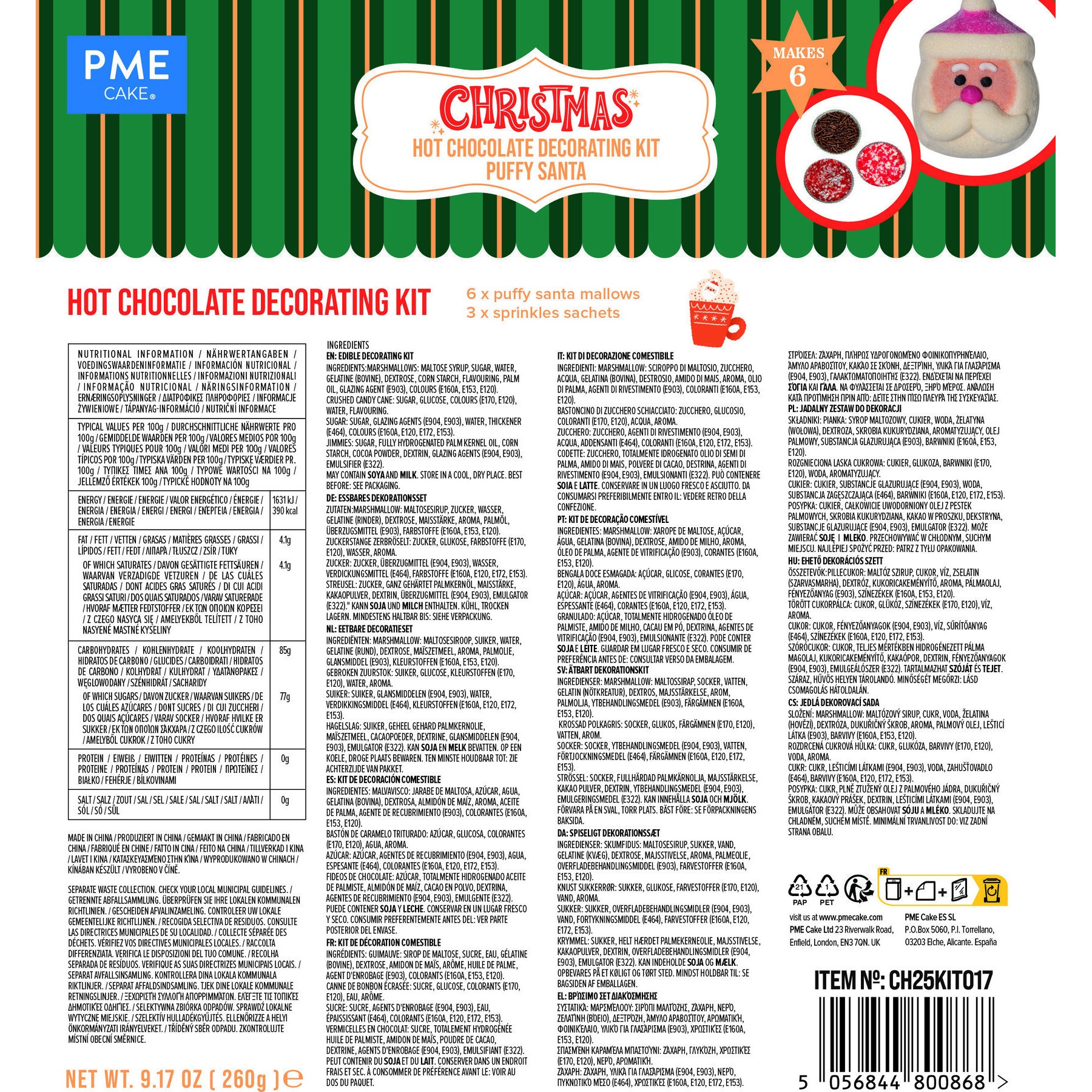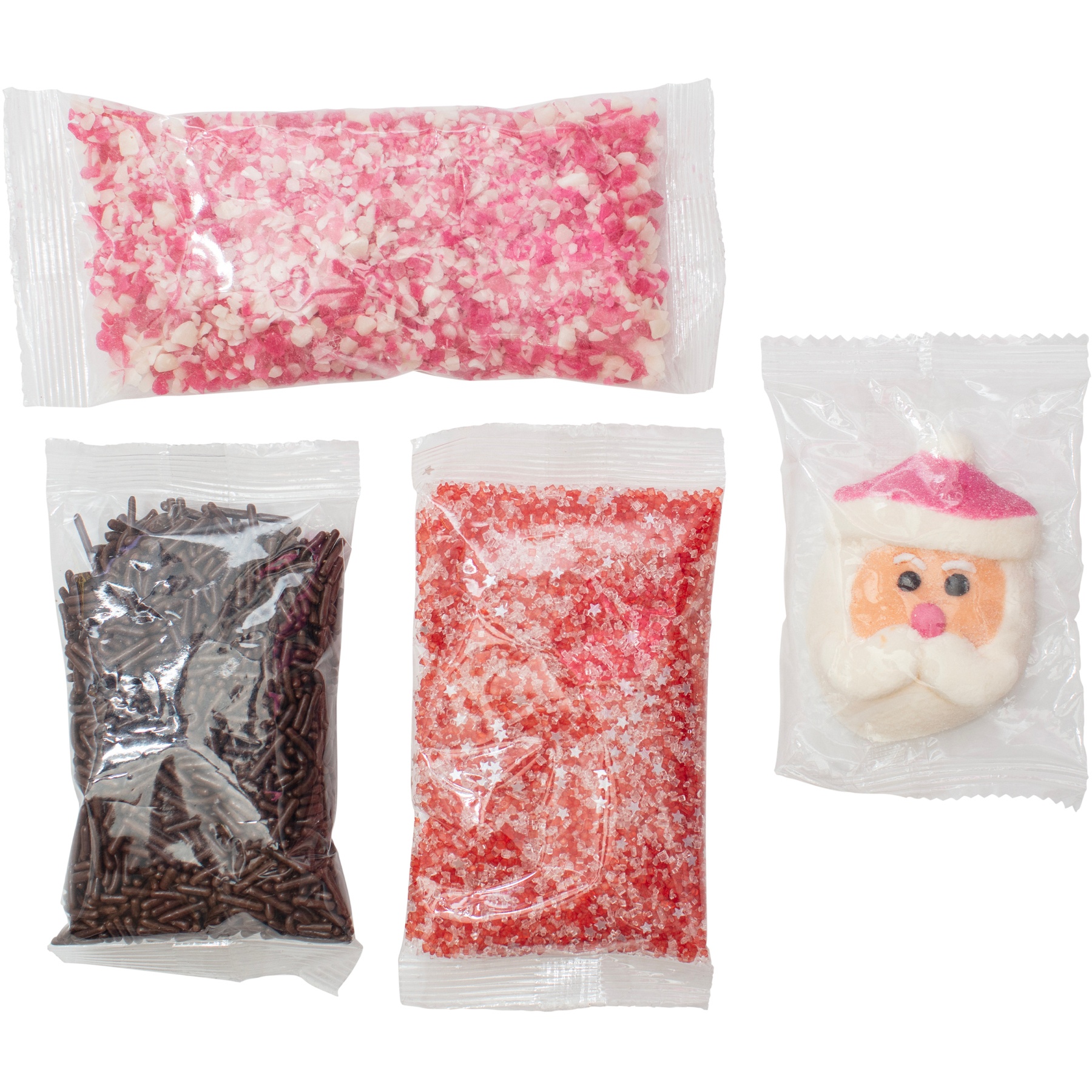 - Incluye 6 nubes de Papá Noel y 3 sobres de sprinkles (fideos de chocolate, bastón de caramelo triturado y azúcar).