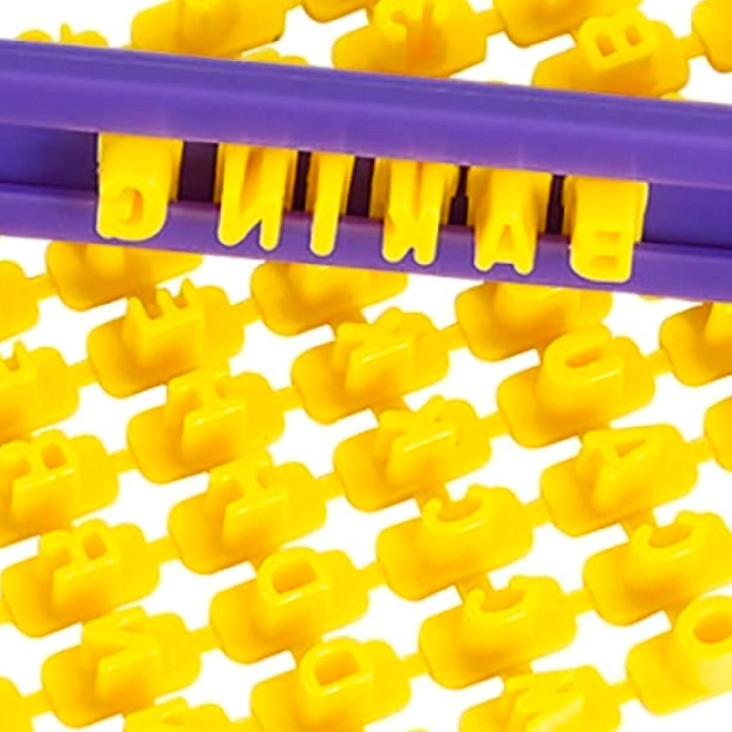- Incluye 72 sellos alfanuméricos (54 letras y 18 números) y 1 soporte para organizarlos.
