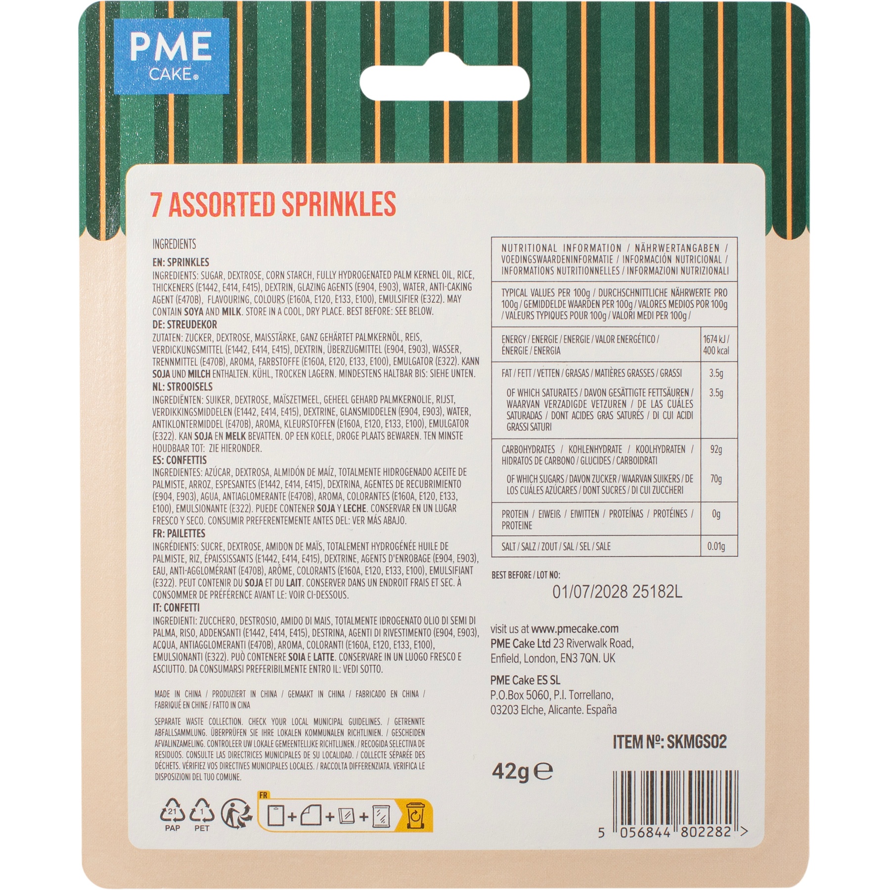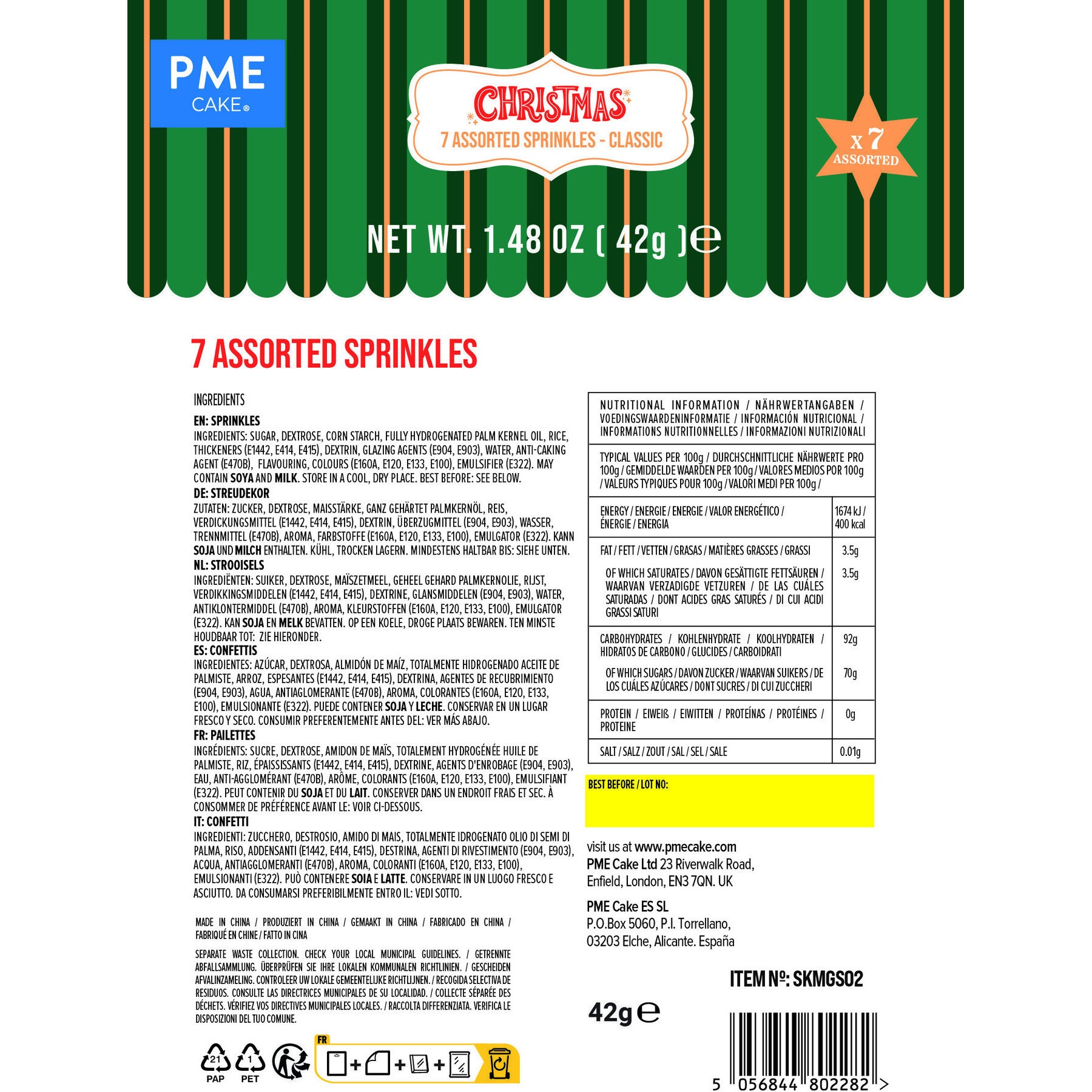 Kit de sprinkles clásico 7 surtidos - PME - 42 gr