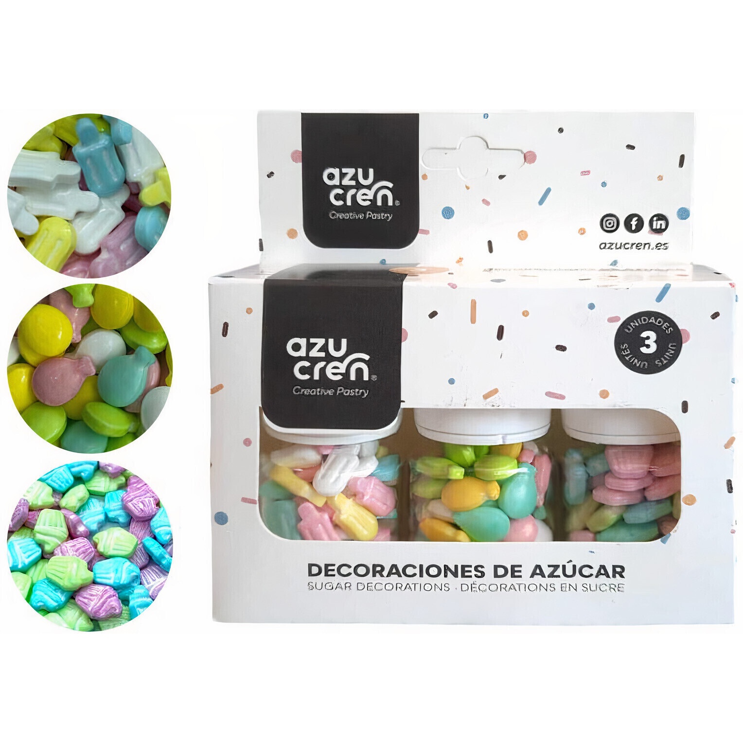 Ingredientes cupcakes: Dextrosa, almidón de maíz, dextrina, estearato de magnesio, Glaseado de repostería, Cera de carnauba, Colorantes E133, *E102 y E162. *Puede tener efectos adverso en la atención y actividad de los niños.