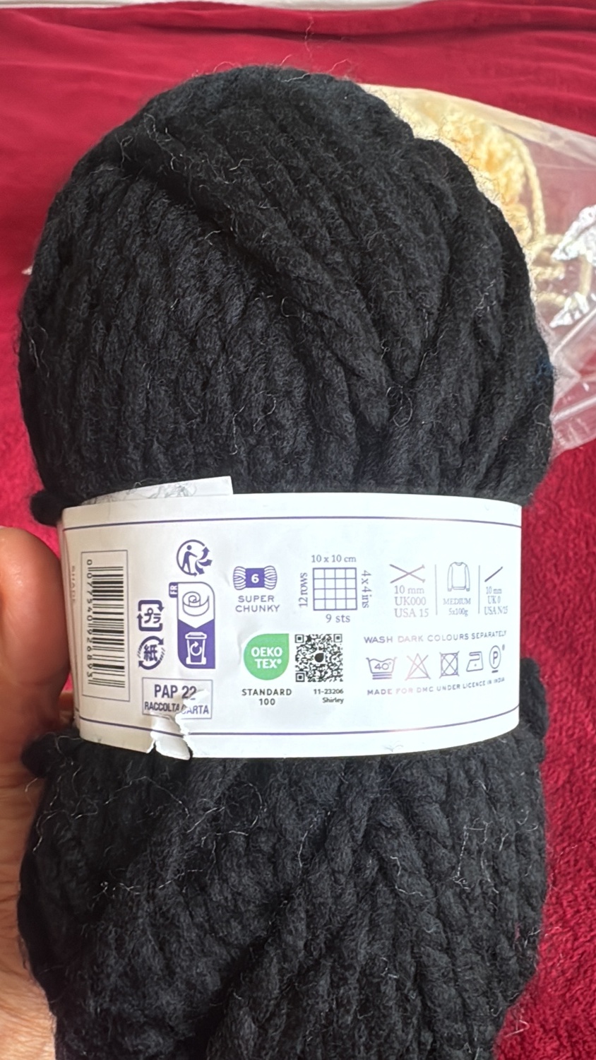 Es una lana muy gruesa que me permite trabajar rápidamente, pero algunos de los colores no coinciden con la foto de la página web, y esto afectó al trabajo que iba a hacer.