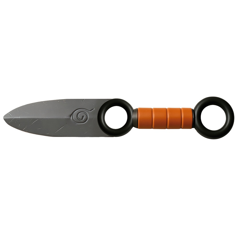 Kunai ninja de 18 cm en PVC, réplica ligera y con acabado que imita el aspecto de las armas tradicionales. Diseñado para complementar disfraces y sesiones fotográficas con una estética fiel al universo ninja. Cuenta con anillo en el extremo para un agarre cómodo y un mango con detalles visibles. Material seguro y pensado para uso recreativo y coleccionismo.
