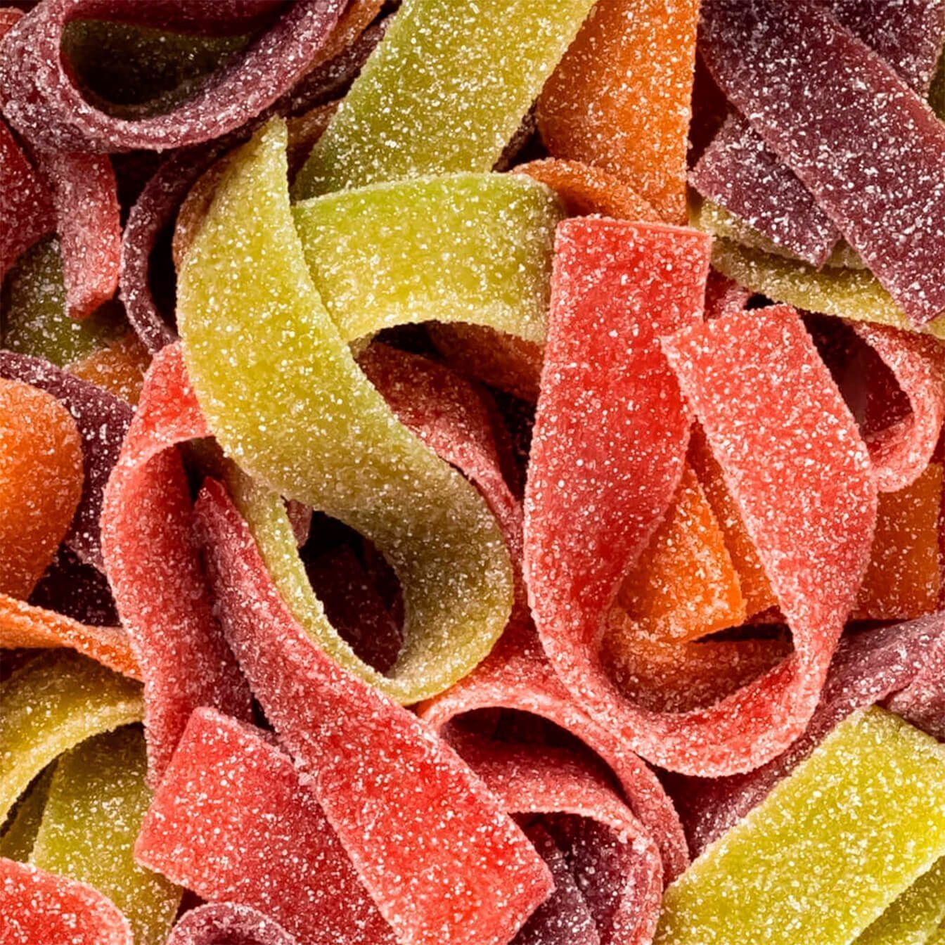 Ingredientes: azúcar, jarabe de glucosa y fructosa, harina de trigo (contiene gluten), acidulante: ácido málico, ácido cítrico, ácido láctico; dextrosa, grasa de palma, almidón de maíz, corrector de acidez: malatos de sodio, lactato sódico, citratos de potasio; concentrado vegetal: cártamo, espirulina, manzana, calabaza, zanahoria, arándano, grosella negra, rábano, tomate; aromas, antioxidante: ácido ascórbico; sal.