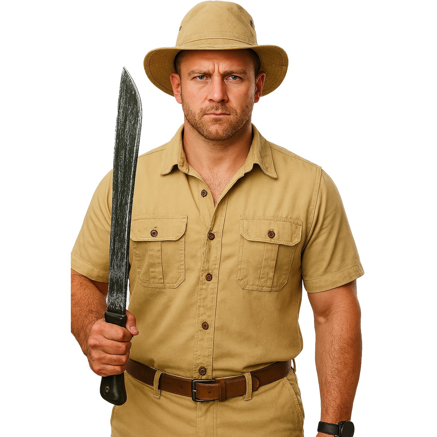 Prop de efecto realista inspirado en los clásicos machetes de cine de terror. Fabricado en PVC resistente y ligero para un manejo cómodo durante fiestas y eventos. Acabado envejecido para un aspecto auténtico que realza cualquier disfraz de asesino clásico. Ideal para Halloween, Carnaval, sesiones de fotos y presentaciones de cosplay.