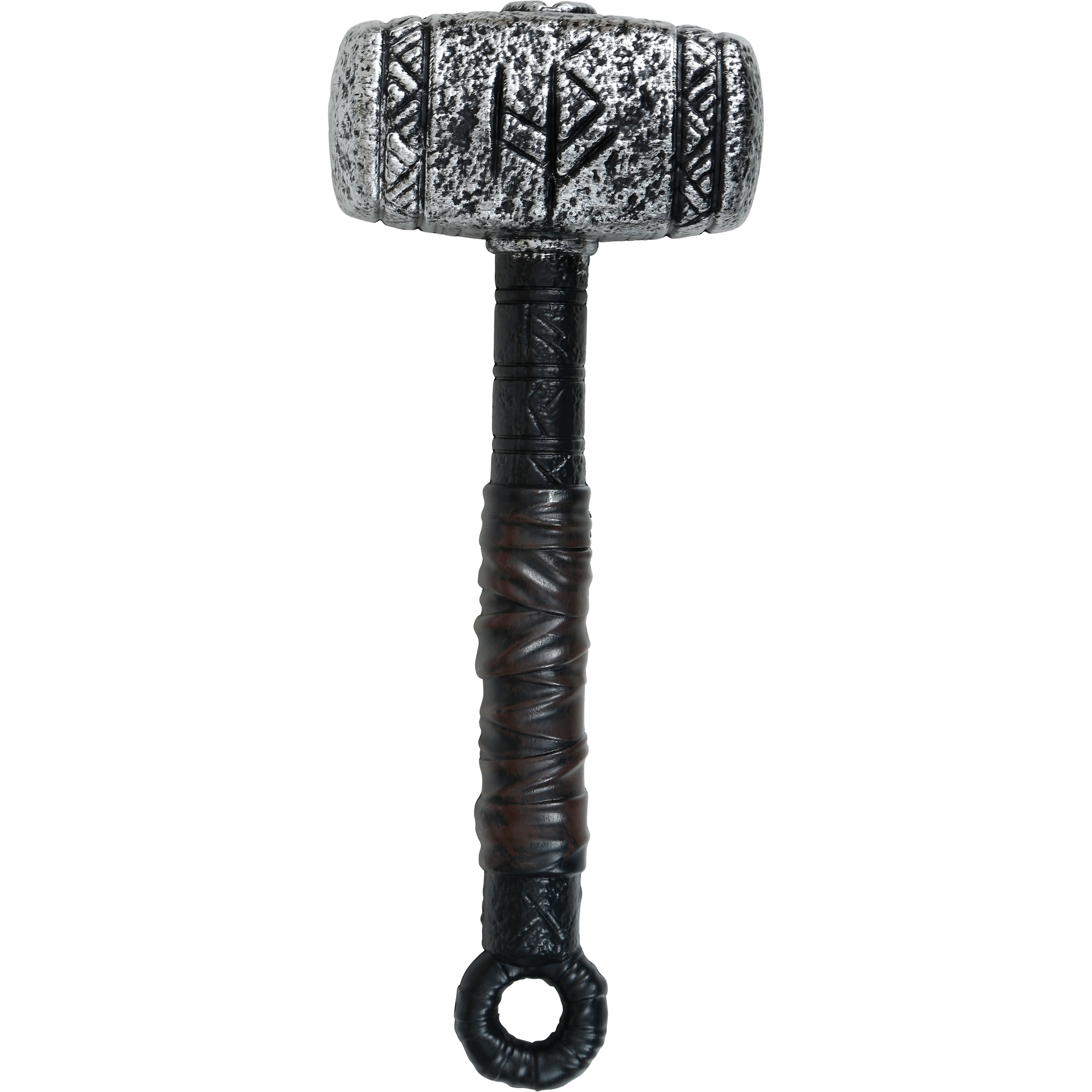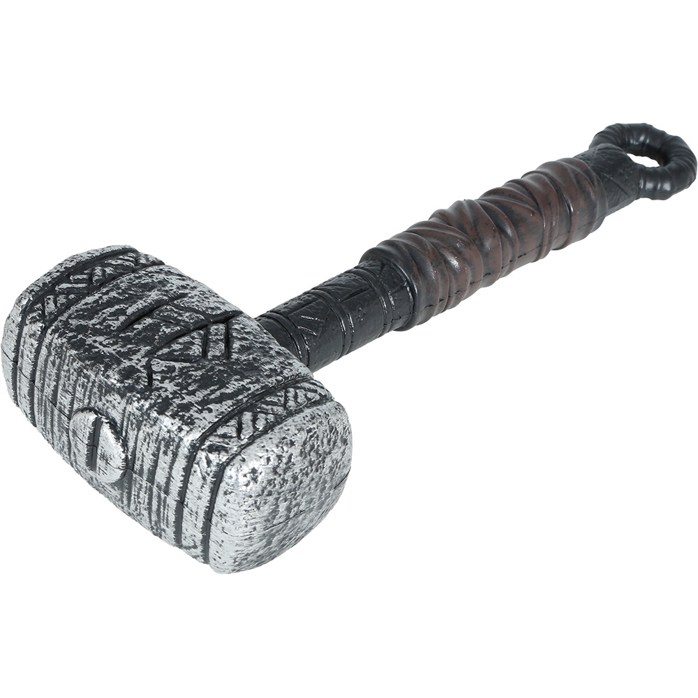 Complemento imprescindible para completar tu look de guerrero nórdico o superhéroe mitológico. Martillo de 35 cm con acabado envejecido que imita piedra y cuero, ideal para Carnaval, fiestas temáticas y sesiones de fotos. Fabricado en PVC ligero y resistente para un uso cómodo y seguro durante todo el evento. Detalles tallados que aportan un aspecto realista sin renunciar a la ligereza.