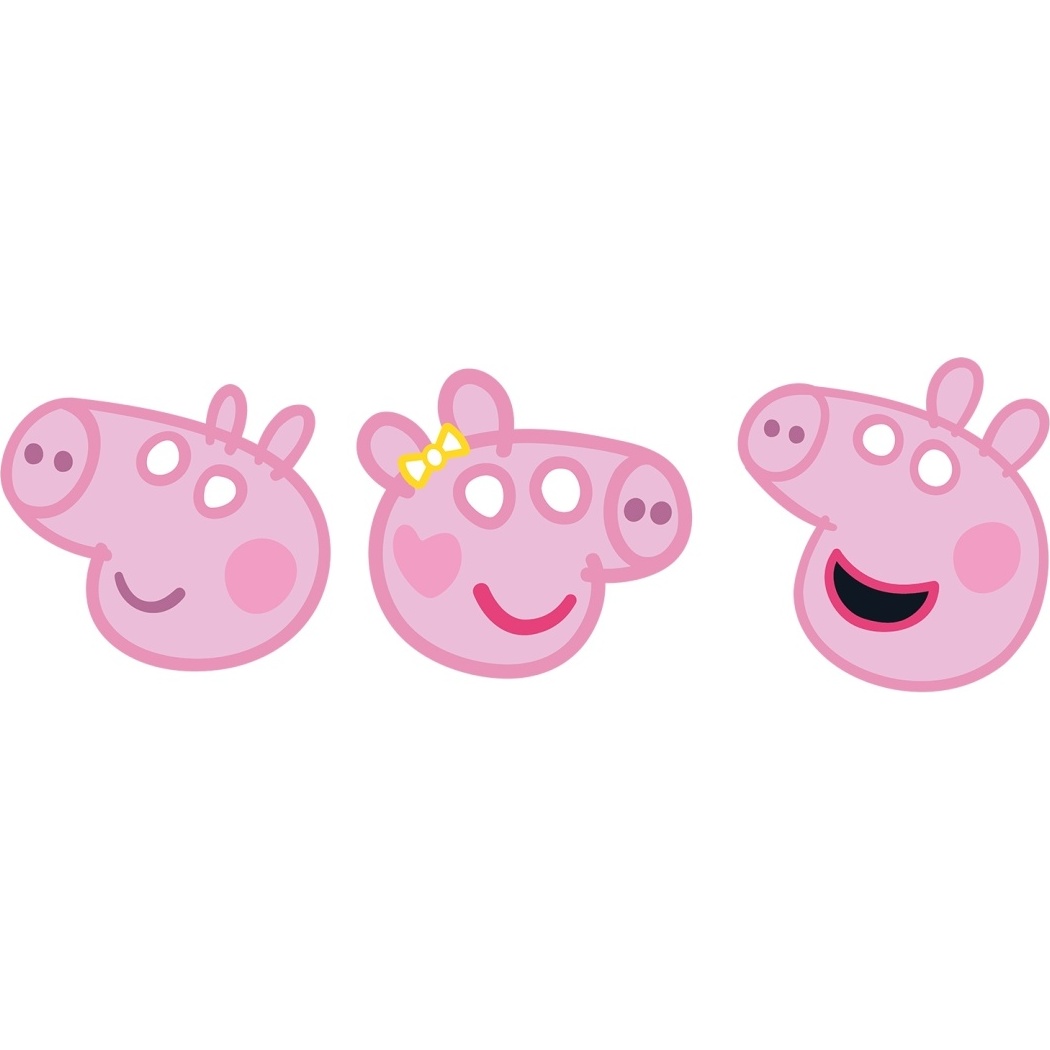 Pack de 6 máscaras oficiales de Peppa Pig con diseños coloridos y reconocibles, pensadas para hacer sonreír a los más pequeños.
