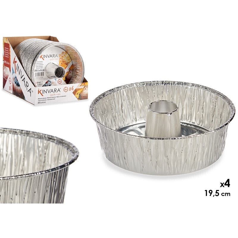 Molde desechable para bizcocho de 19,5 x 19,5 x 6 cm - 4 unidades