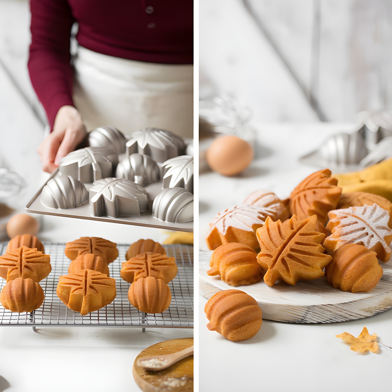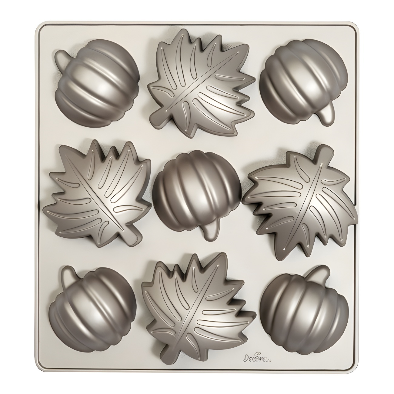 Un molde para crear pasteles otoñales de hojas y calabazas.