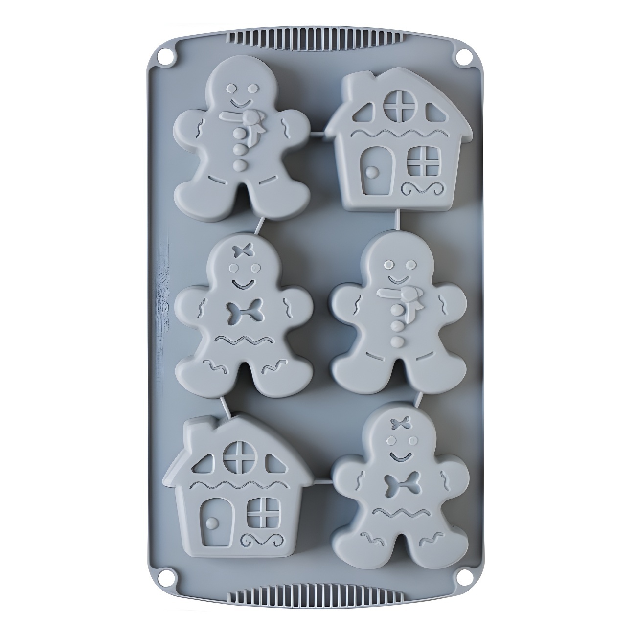 Fantástico molde de silicona perfecto para preparar creaciones dulces y saladas con forma de muñequitos y casas de jengibre, creando unos dulces muy navideños.