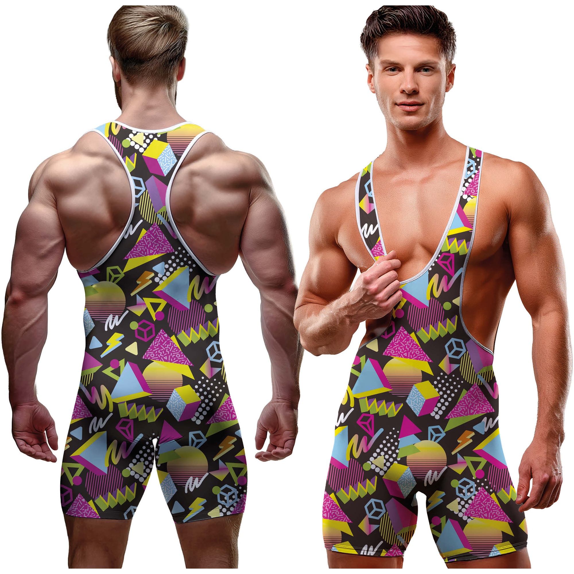 Mono 80s Neón con estética retro ochentera. Diseño geométrico y colores neón que recrean el ambiente vibrante de los años 80. Corte ceñido con tirantes anchos y escote pronunciado que realza la figura. Confeccionado en poliéster elástico para un ajuste cómodo y libertad de movimiento. Perfecto para destacar en fiestas temáticas, sesiones de fotos y eventos con estética retro.