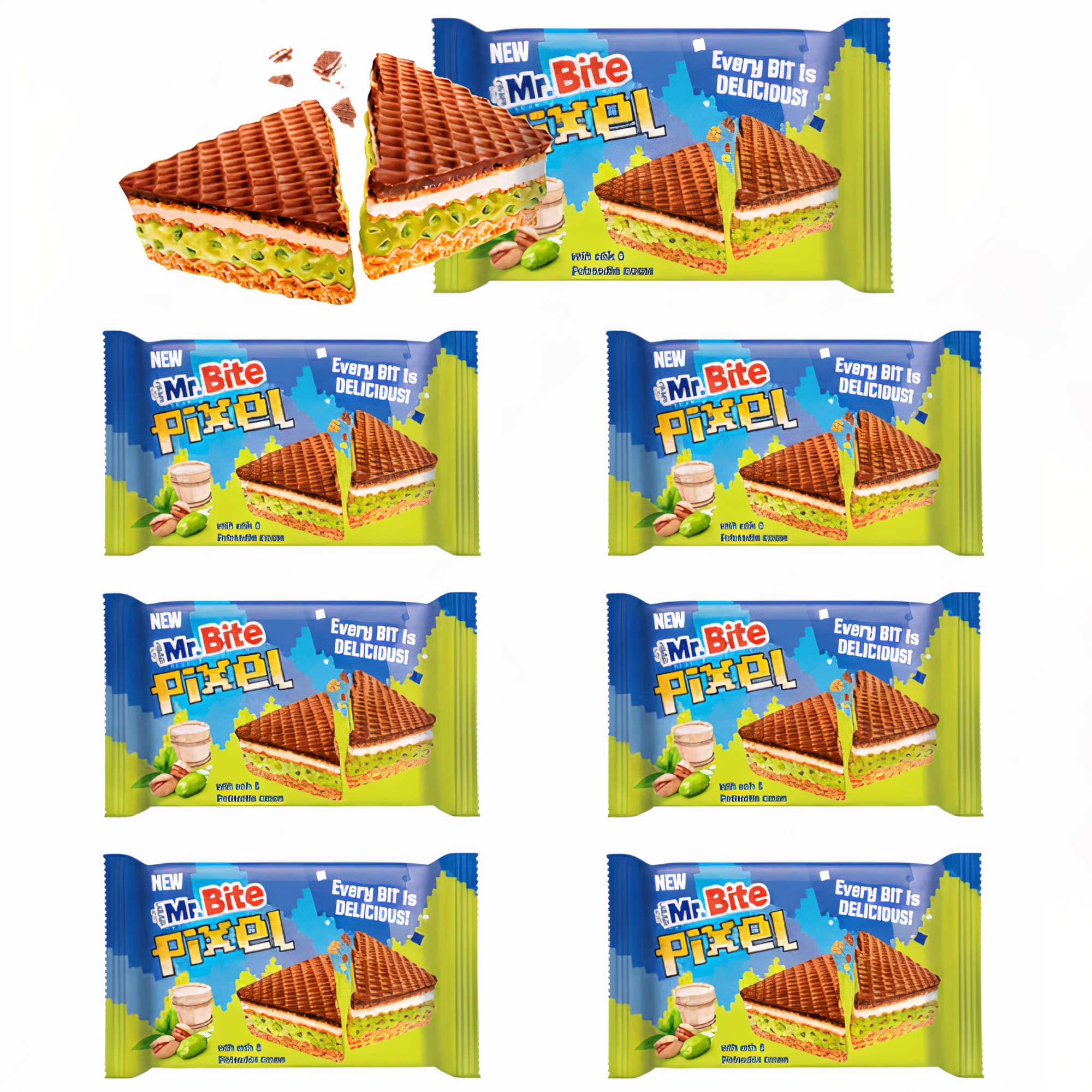 Mr Bitel Pixel de chocolate con crema de pistacho de 30 gr - 6 unidades