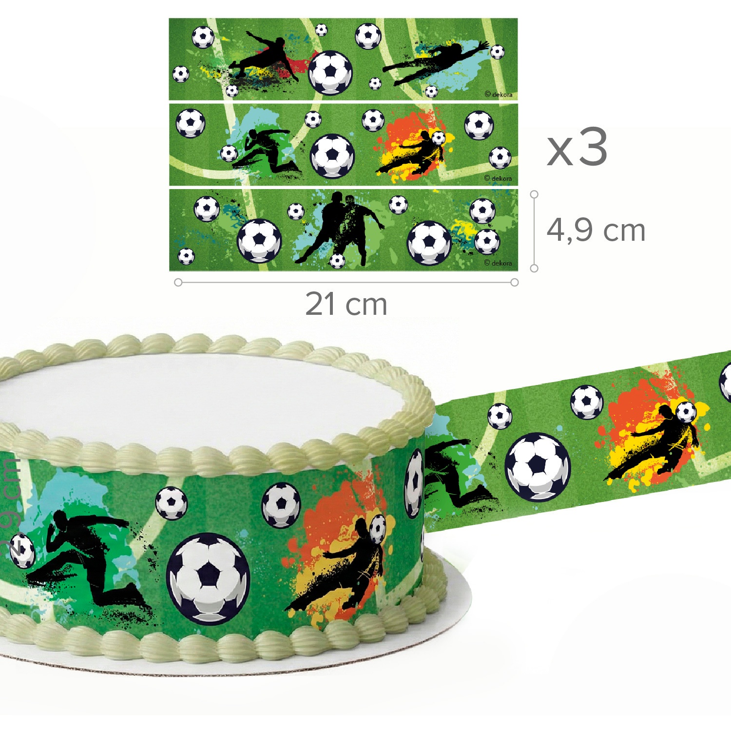 Oblea comestible de fútbol para borde de tarta de 21 x 4,9 cm - 3 unidades