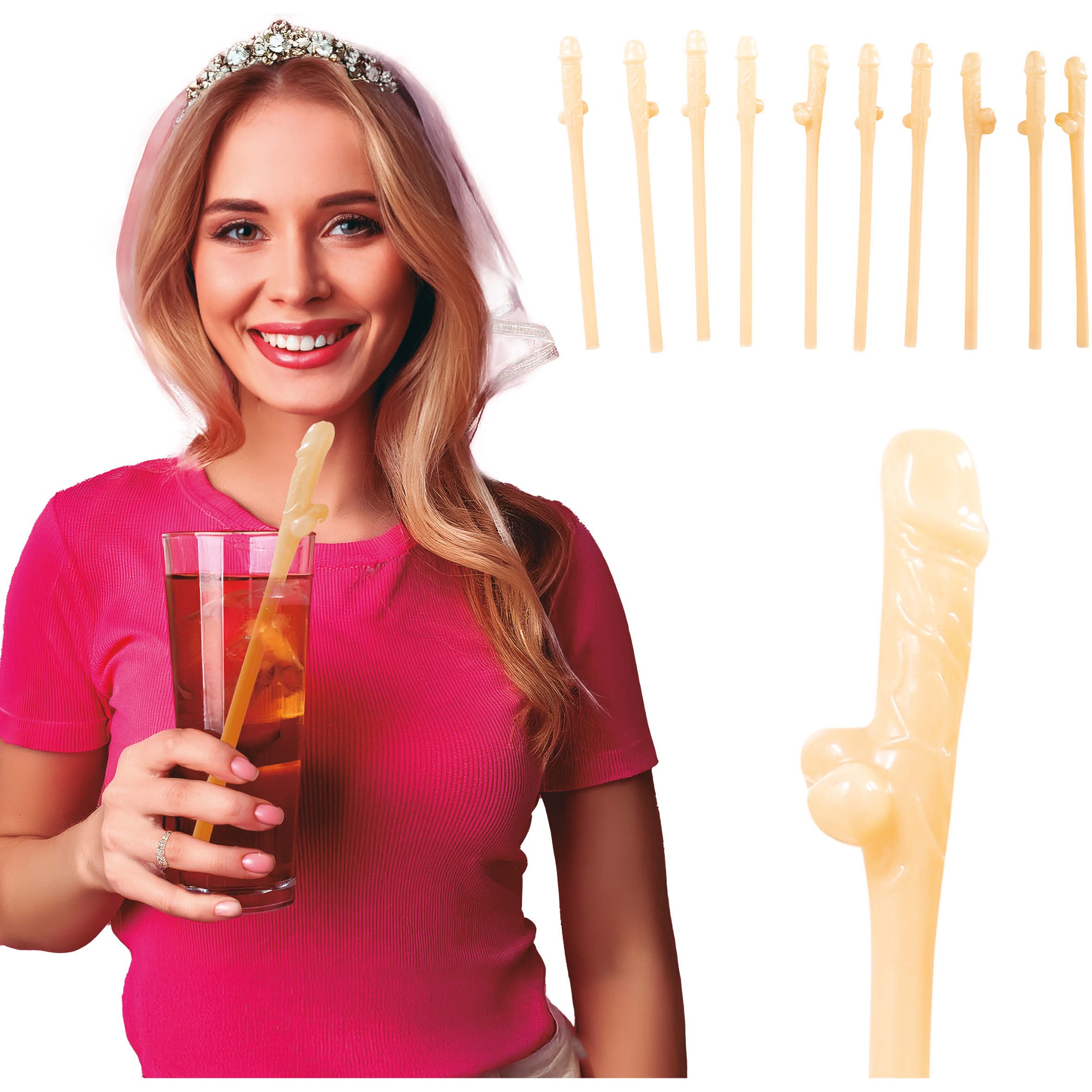 Pack de 10 pajitas con diseño divertido en forma de pene, pensadas para animar despedidas de soltera.