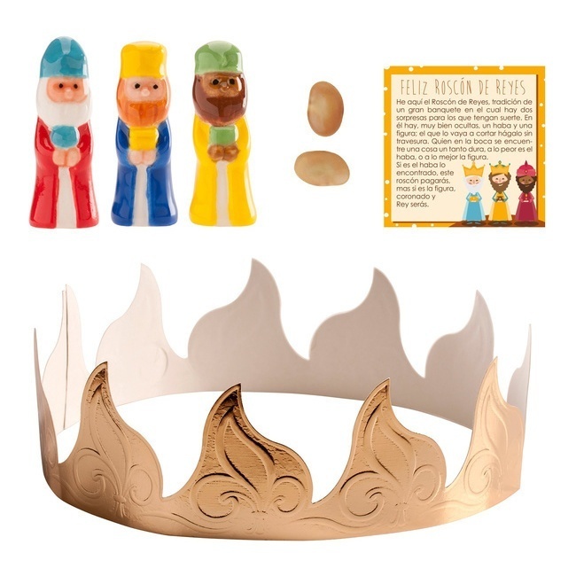 10 x Kit para roscón de reyes: corona, haba, rey y tarjeta