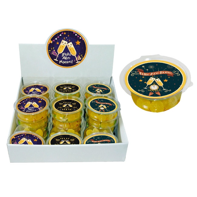 Mini tarrina de gominolas que podrás cambiar por las uvas de fin de año.