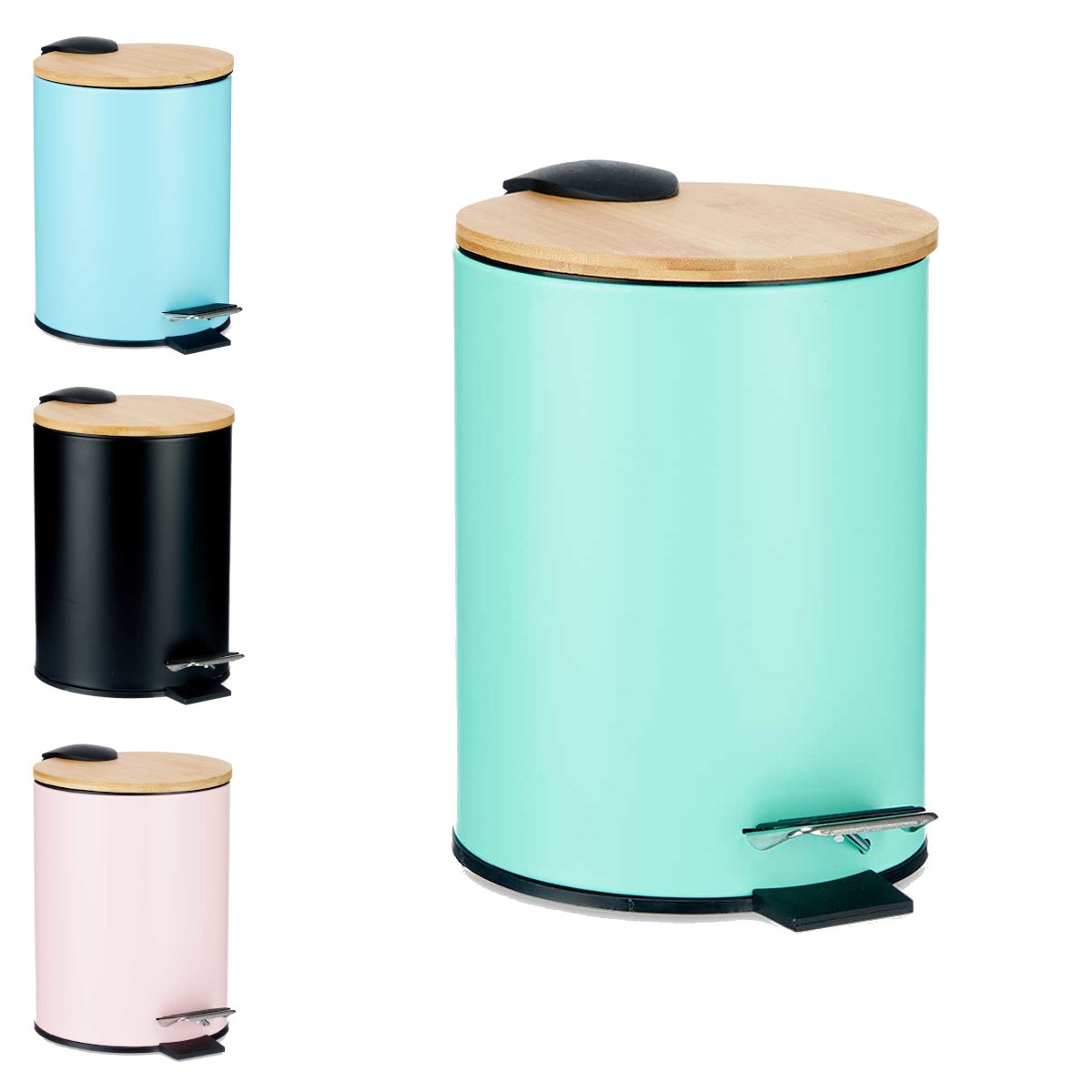 Papelera para baño de 3 L de colores con tapa de bambú