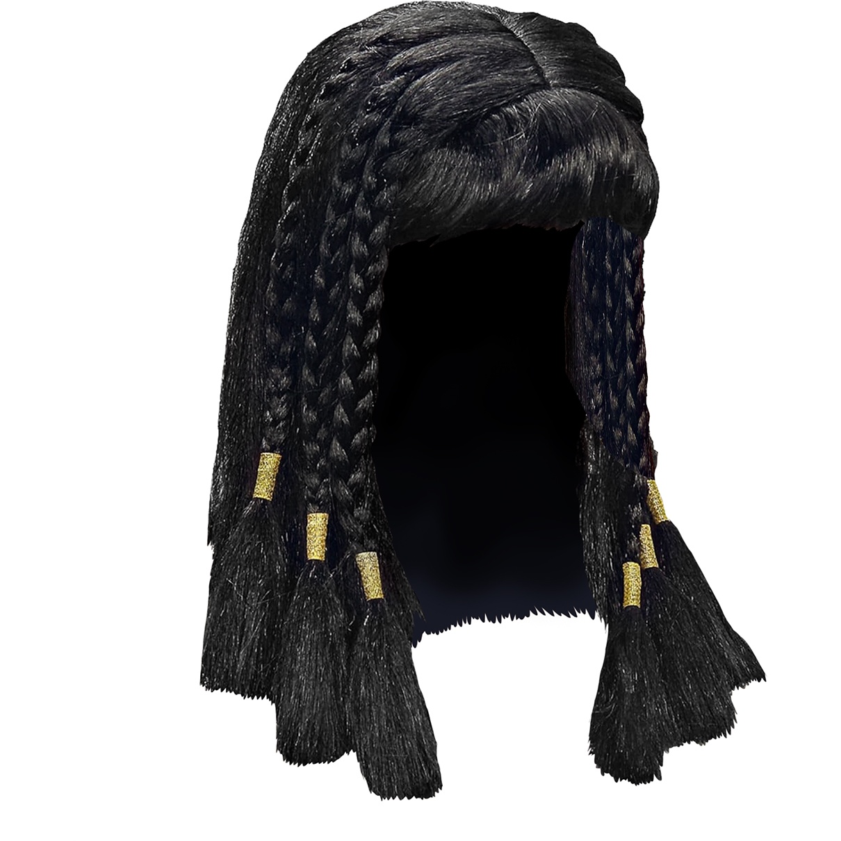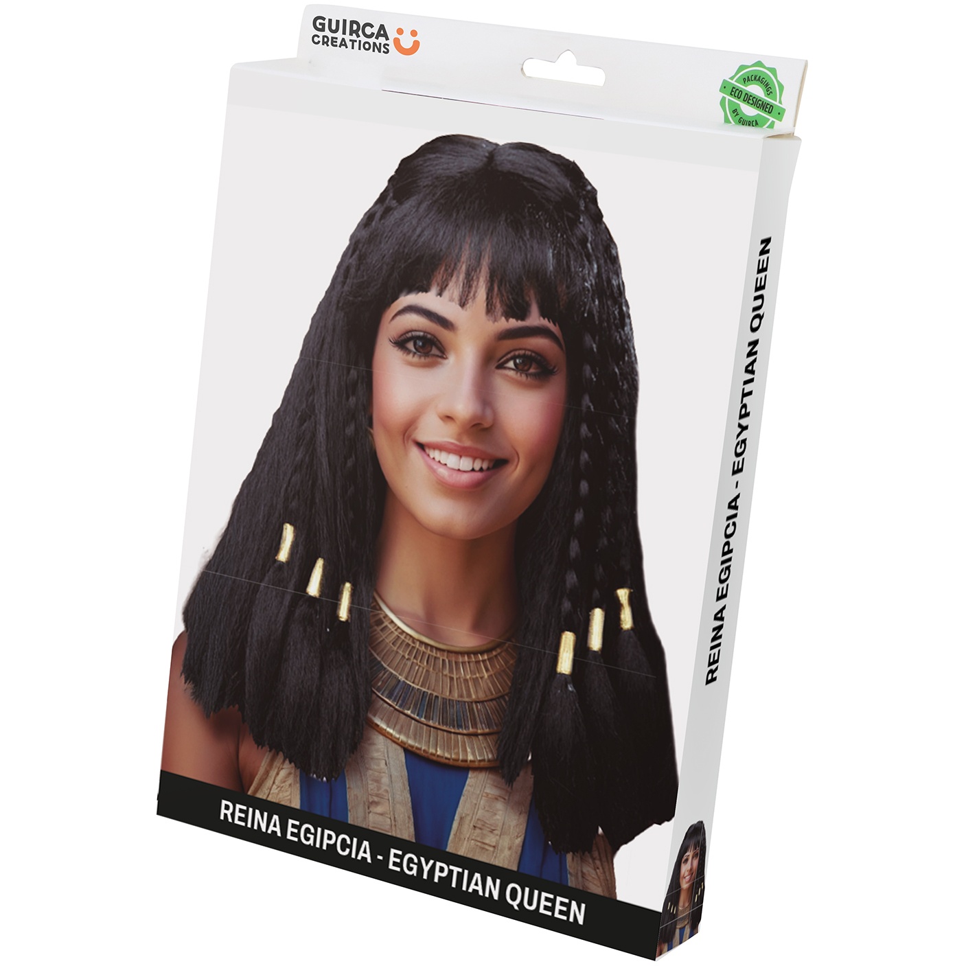 Consigue un aspecto auténtico de reina del Nilo con esta peluca Cleopatra diseñada para mujer adulta. Presenta un flequillo recto y mechones largos con trenzas laterales decoradas con detalles dorados que realzan el estilo egipcio clásico. Su volumen y caída aportan un acabado dramático y elegante que completa cualquier caracterización histórica o teatral. Talla única pensada para adaptarse cómodamente a la mayoría de cabezas adultas.