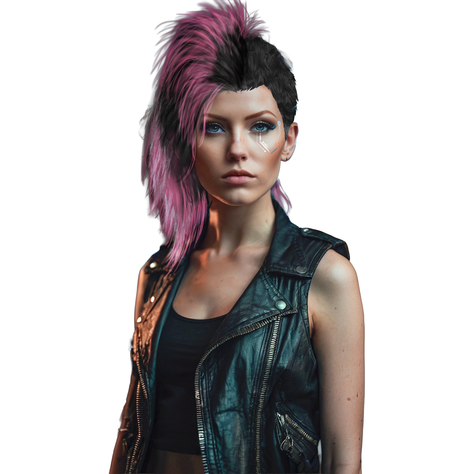 - Estilo punk con cresta alta en tonos rosa y negro para un impacto visual inmediato.